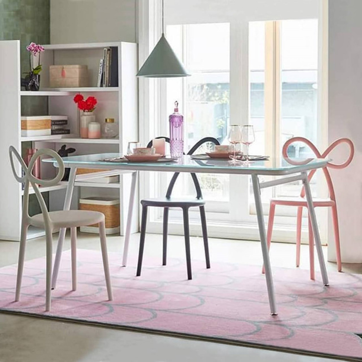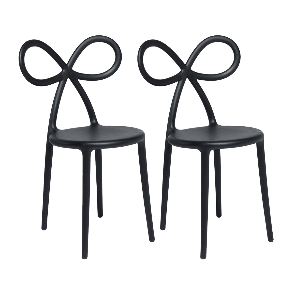 Ribbon Chair Set 2 Pezzi by Qeeboo è la coppia di sedie di design rievocante un mondo straordinariamente romantico, è la sedia femminile per eccellenza. Una sedia di successo, dalla forte identità e caratterizzata da un fiocco pensato come schienale. Il fiocco, simbolo vivace di dono e di festa, è tradotto dalla designer con un segno morbido, leggero ed essenziale. Dopo il rosa, il candido bianco, ed un nero quasi austero, si presenta nella nuova versione glam oro e oro rosa. Colori: nero, rosa, bianco e disponibile anche in oro, oro rosa e argento metallizzati.