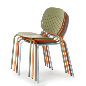 Si-Si è la sedia di design eclettica, camaleontica e smart, che non basa la sua forza sul mero aspetto estetico, perché è capace di interpretare il fragile equilibrio tra indoor e outdoor. Un corpo unico, fissato alla struttura slanciata, può fungere sia da schienale che da seduta. Da qui il nome Si-Si, un suono ripetuto due volte che rende omaggio alla duplicità di questo elemento. Un telaio e quattro 'corpi', con trame e materiali eterogenei, lo rendono adatto ad ambienti molto diversi tra loro. Si-Si asseconda le più svariate soluzioni abitative per ambienti privati e per tutte le situazioni legate al poliedrico mondo contract. Impilabile fino a 6 pz.