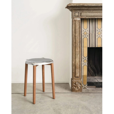 nero. Struttura in legno di faggio tinta naturale. Philippe Starck disegna una collezione di piccolo arredo composta da sedie, sgabelli e appendiabiti. La Poêle Collection valorizza l’abilità della Alessi nella lavorazione dell’acciaio: il richiamo alla “padella” contenuto nel titolo allude all’eccellenza dell’officina meccanica dell’azienda che da oltre un secolo produce oggetti per la tavola e la cucina dall’alta qualità esecutiva. Tale abilità si esprime nella lavorazione delle sedute della Poêle Collection in cui l’elemento metallico assume una matericità sorprendentemente fluida: la lastra d’acciaio appare morbida, avvolgendo armoniosamente le parti in legno. Il risultato è una serie di sedie e sgabelli dalla forte identità, il cui disegno dialoga con la leggerezza formale dell’appendiabiti. Una collezione in grado di inserirsi in ambienti dagli stili diversi, in casa come in ufficio o nell’arredo contract di alto livello. DEDICATO A. Per gli amanti del design che desiderano creare atmosfere sofisticate e per chi apprezza in oggetti e arredi la ricercatezza dei dettagli formali. Per i fan di Alessi che potranno scoprire l’azienda in un nuovo contesto domestico. LA LEGGEREZZA DELL’ACCIAIO. Alto 65 centimetri, questo sgabello racchiude in un unico oggetto le differenti declinazioni dell’acciaio immaginate da Philippe Starck per la Poêle Collection: leggero e asciutto nel disegno del poggiapiedi, morbido e organico nella seduta. Un arredo elegante, adatto a completare l’isola o la penisola della cucina, ma anche lounge bar e spazi contract dal design ricercato. UN PROTAGONISTA DELL’ARREDO CUCINA. Due versioni colorate - bianca e nera - ampliano la proposta degli sgabelli alti della Poêle Collection disegnata da Philippe Starck. La colorazione del metallo valorizza la forma morbida della seduta che dialoga per contrapposizione con l’essenzialità del disegno del poggiapiedi. Protagonista indiscusso tra gli arredi della cucina o dei lounge bar, questo sgabello attrae per i dettagli non convenzionali e il comfort ben calibrato. ELEMENTI. Sgabello in acciaio colorato e legno di faggio con finitura trasparente; poggiapiede in metallo cromato satinato. Nella parte inferiore della scocca, integrata alla marcatura, è riportata la firma di Philippe Starck. NOTE DI DESIGN. Un duttile alleato. Facile da abbinare a qualsiasi isola o penisola della cucina, per consumare comodamente la colazione, uno spuntino o un pranzo veloce. Dettagli ricercati. La linea leggera del poggiapiedi viene esaltata da una preziosa finitura lucida.