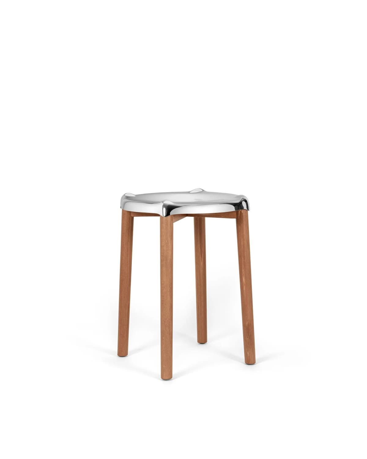 Alessi PS22 Poele Low Stool Sgabello basso acciaio lucido Philippe Starck | Sgabello in acciaio inossidabile 18/10 lucido. Struttura in legno di faggio tinta bruna