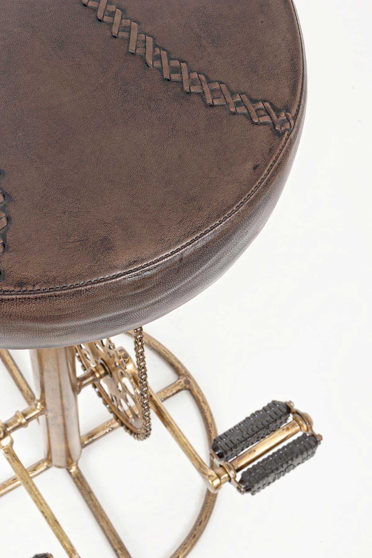 Sgabello bar Cycle oro H 80 Bizzotto | Sgabelli design, con pedali, in acciaio, vera pelle