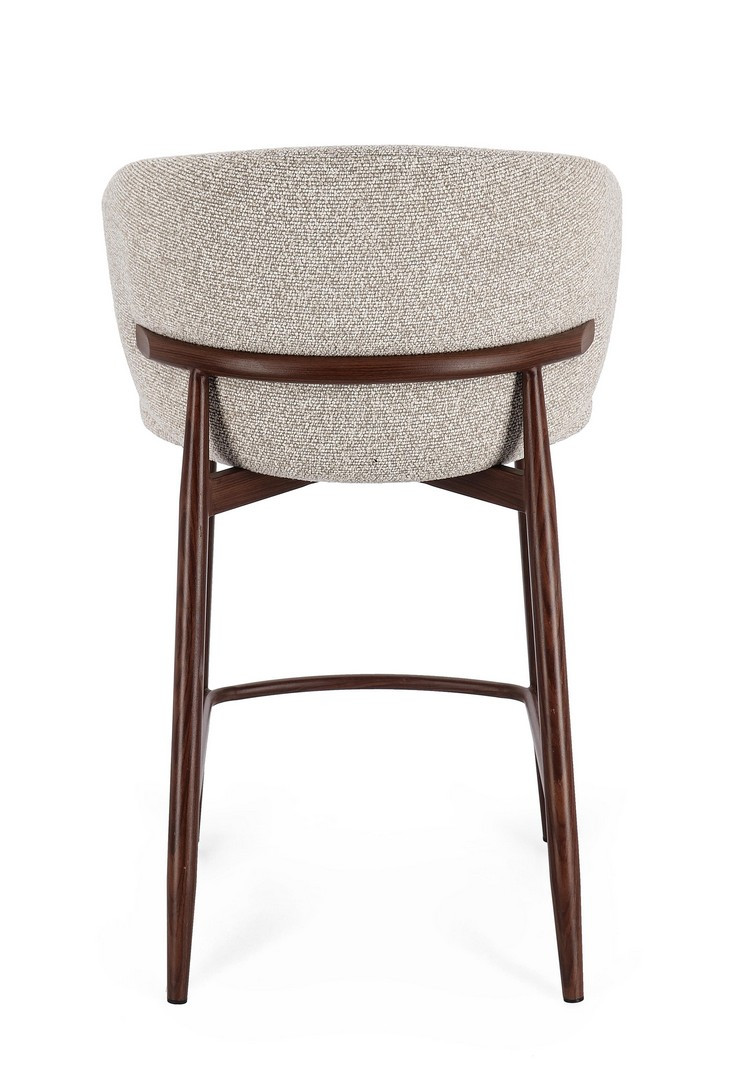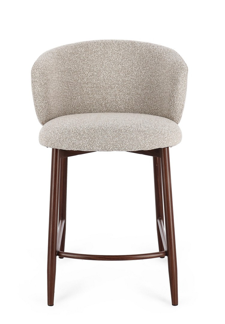 Sgabello Cucina Amalia Noce-Beige Bizzotto | Sgabello design in acciaio e tessuto effetto bouclè