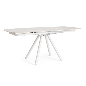 Tavolo allungabile Joakim 160-240x90 bianco Bizzotto | Tavolo design rettangolare in acciaio e gres porcellanato effetto marmo bianco opaco