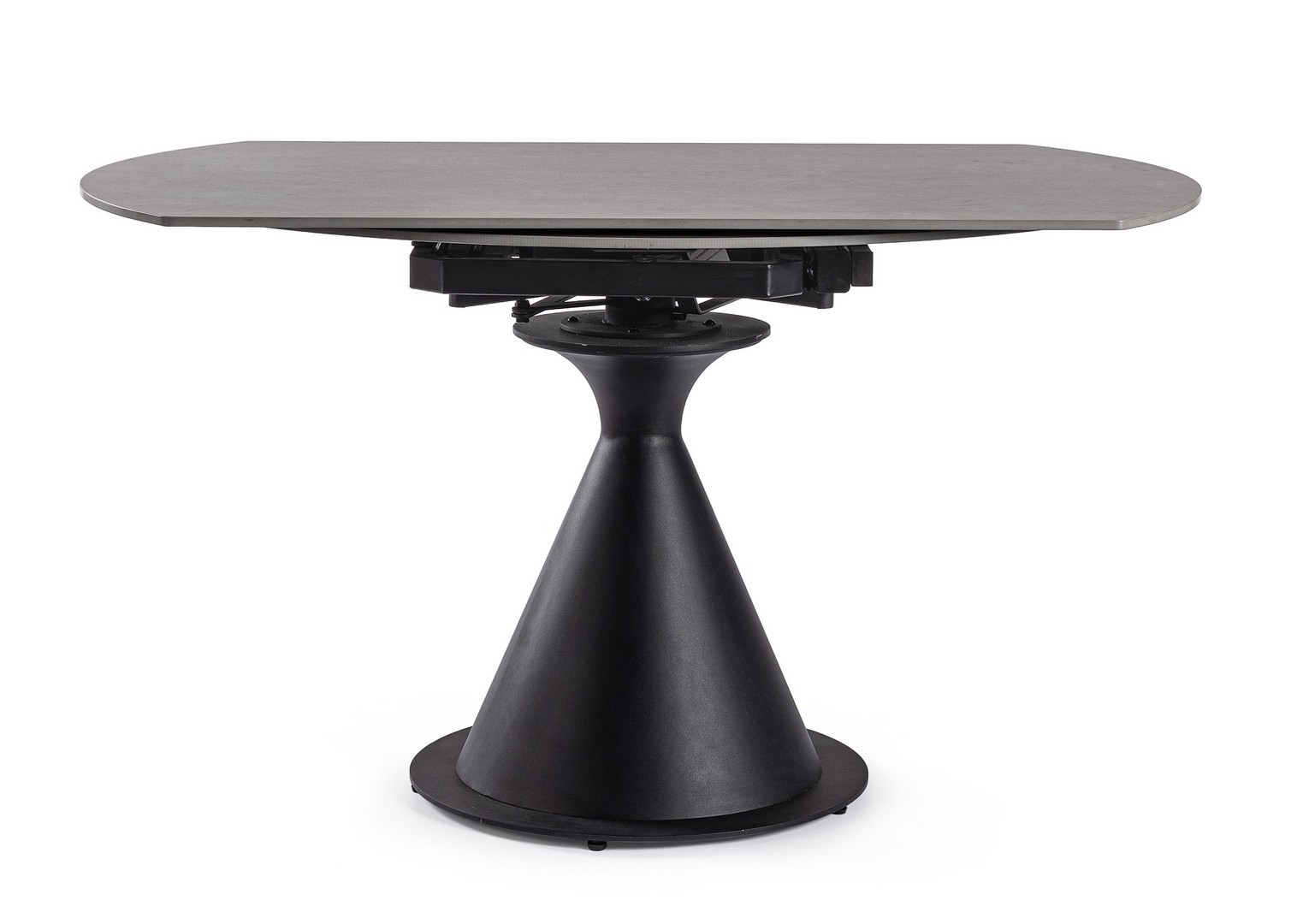 Tavolo allungabile Jonni 85-135 nero di Bizzotto è un tavolo di design con base in acciaio verniciato a polvere epossidica, piano in gres porcellanato con effetto marmo grigio opaco. Da assemblare.
