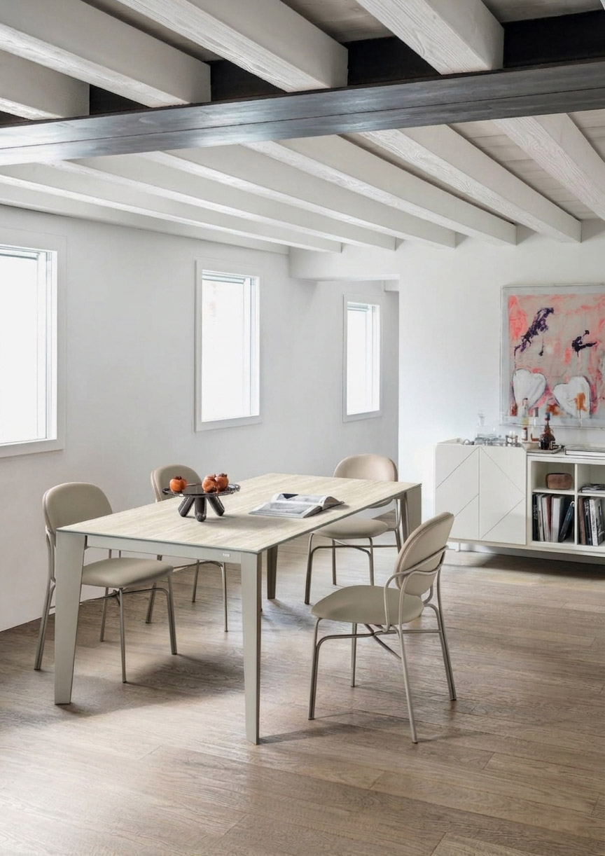 Tavolo Cruz XXL 20.69 SuperMarmo Travertino bianco pietra opaco Bontempi Casa | Tavolo design con allunghe in acciaio e marmo
