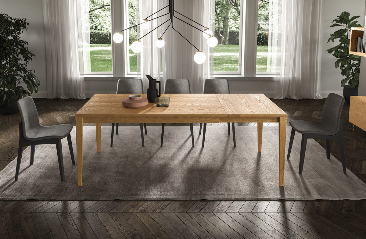 • Tavolo estensibile, struttura in legno e guide scorrevoli in metallo