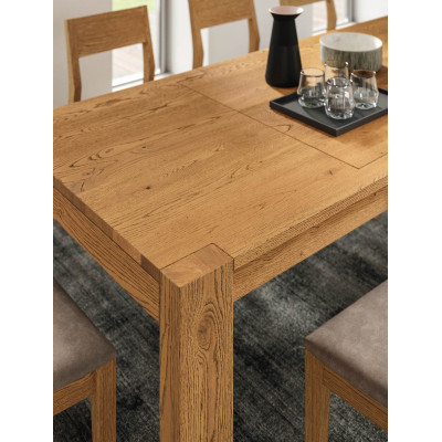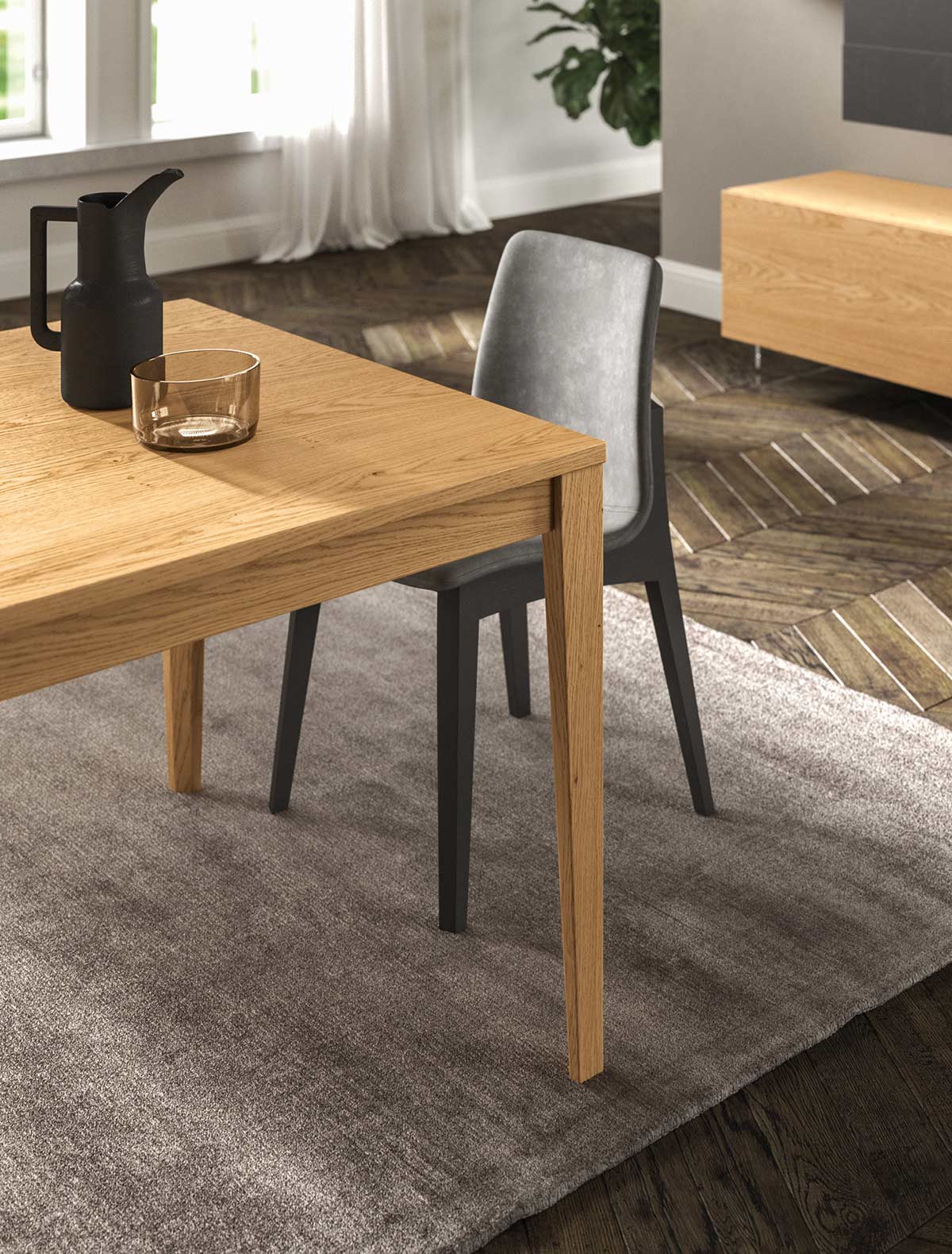 Il Tavolo Loom estensibile Rovere di FGF Mobili è un tavolo allungabile di design estensibile rettangolare con la prolunga inserita all’interno del telaio, il cui sistema di allungamento è realizzato in maniera da avere un risultato estetico, a tavolo allungato, completamente con vista in legno, anche se il meccanismo di estensione è realizzato con due guide metalliche scorrevoli. La sezione delle gambe è di sessanta millimetri nella parte superiore, mentre si riduce nella parte inferiore creando quel risultato estetico più sottile grazie ai tagli inclinati. Il piano del tavolo, reale protagonista, è realizzato, certamente in legno massello, con un consistente spessore di venticinque millimetri a renderlo robusto e adatto a durare nel tempo. Il tavolo LOOM è caratterizzato dal essere interamente realizzato in legno: gambe e struttura, ideale per diventare un pezzo caratterizzante in un ambiente moderno, dove il suo essere in vero legno porta quel tocco di Natural in mezzo a materiali sintetici e rigorosi. Profilo dritto del piano che è proposto nell'elegantissime finiture Rovere OCI. La scelta del legno massello è perfetto per chi è alla ricerca di un tavolo dall’effetto naturale che rappresenti quello che è realmente il legno. L’unicità di un tavolo in legno massello consiste nelle differenze di colore tra le assi chiare e scure e nei nodi grandi e piccoli. Il risultato finale è sempre diverso, unico e originale. La scelta del tavolo realizzato in legno massello comporta il fatto di accettare la presenza o il formarsi nel tempo di alcune piccole crepe e spaccature nonchè leggere deformazioni, senza che tali caratteristiche ne compromettano in alcun modo la qualità e la durata. Le nostre idee prendono forma dal pregiato legno massello di Quercia, comunemente chiamato Rovere. Il vero legno massello presenta una serie di naturali difetti che raccontano la storia dell’albero. Le venature, i nodi, le crepe e le differenti sfumature cromatiche rendono ogni asse unica e ogni creazione irripetibile, elementi di grande fascinazione che distinguono il legno massello da ogni altra varietà di materiale, rendendo il tuo mobile unico ed esclusivo. I mobili vanno spolverati passando prima uno straccio morbido leggermente umido e successivamente uno straccio morbido asciutto. Nel caso di sporco resistente inumidire il primo straccio con una piccola quantità di sapone neutro. Su eventuali parti logorate si può intervenire stendendo con un panno di lana una cera di finitura specifica per mobili. Si raccomanda di evitare l’utilizzo di prodotti contenenti acetone, alcool, ammoniaca, diluenti, detersivi abrasivi o cere per mobili che possono danneggiare e persino sverniciare la superficie stessa dei mobili. Evitare l’utilizzo di detergenti contenenti sostanze aggressive o abrasive. Sui mobili e loro componenti non si deve appoggiare pentole, caffettiere o altri oggetti che emanino calore. Soluzioni oleose, candele, inchiostri, latte, acido citrico e derivanti danneggiano in modo indelebile la superficie.