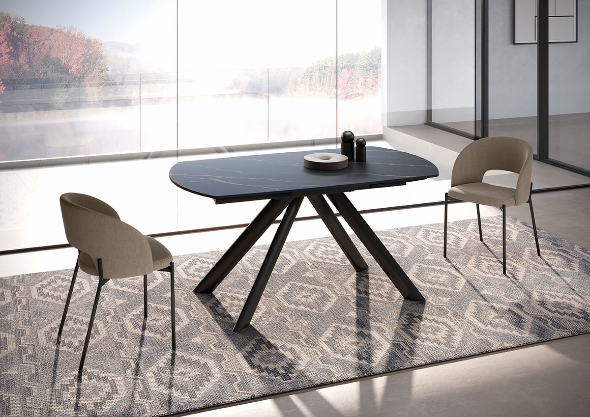 Blaze 43.55 è l'iconico tavolo da pranzo a botte allungabile firmato Ingenia Casa capace di unire estetica moderna e ricercatezza materica, diventando il fulcro ideale per ambienti living e dining di alto profilo. Il piano a botte, caratterizzato da raffinate finiture in ceramica Supermarmo, conferisce un’eleganza sobria e contemporanea. Le sue linee morbide e la forma arrotondata creano un equilibrio visivo perfetto tra comfort e stile. La struttura è definita da una base scultorea a gambe intrecciate, realizzata con un solido metallo verniciato, che dona stabilità e un carattere architettonico distintivo. Questa geometria dinamica non solo impreziosisce l’estetica del tavolo, ma permette anche un’ottima fruibilità degli spazi circostanti. Ideale per contesti moderni, open space luminosi o sale da pranzo dal gusto minimal, questo tavolo si distingue per versatilità e personalità. Perfetto per chi desidera un elemento d’arredo capace di coniugare design, qualità costruttiva e presenza scenica.