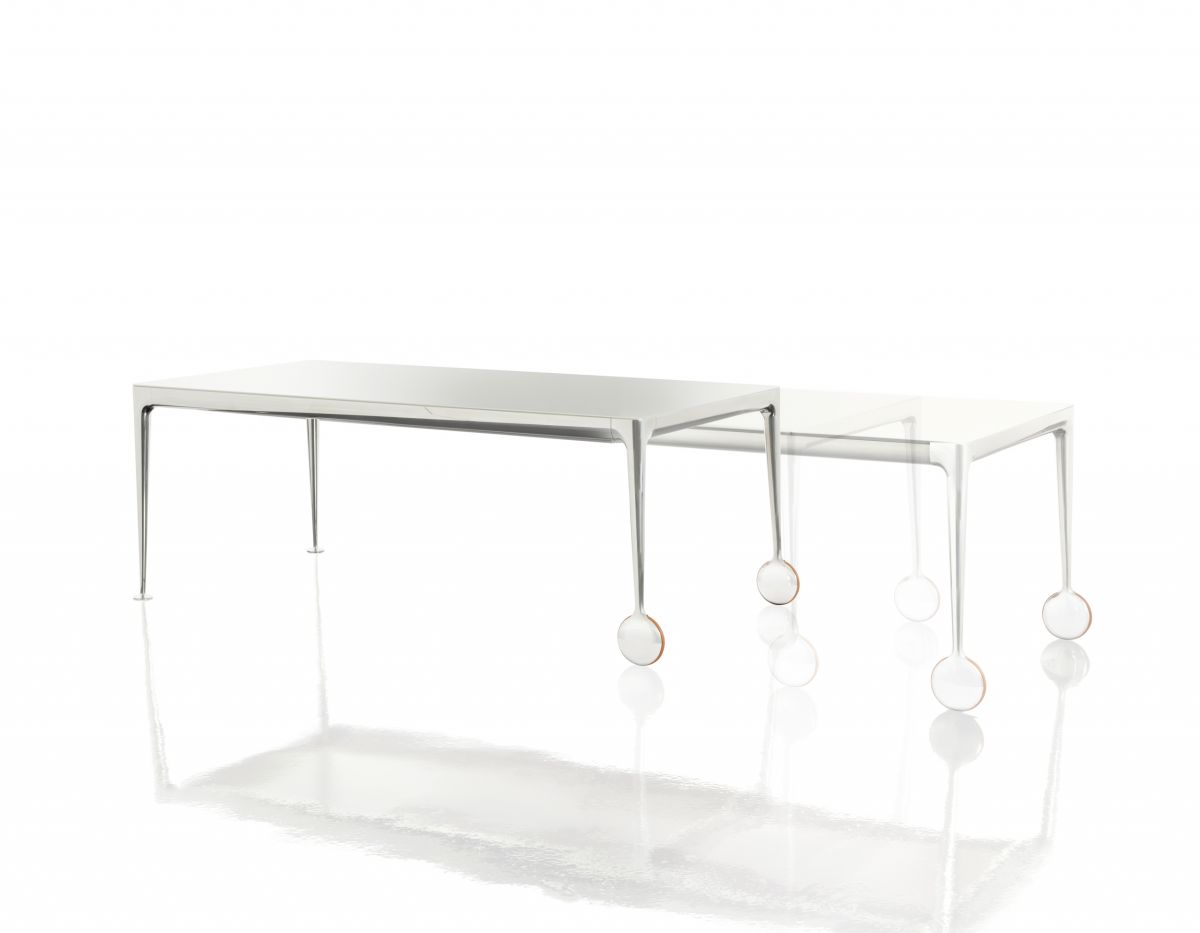 Big Will Tavolo allungabile cristallo bianco lucido Magis | Tavolo design rettangolare estensibile in alluminio lucido e piano in cristallo temperato acidato lucido