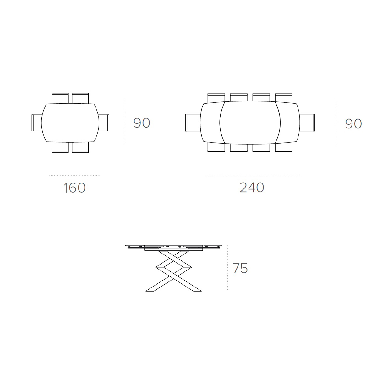 Il tavolo allungabile Tavolo Cross 160 Allungabile botticella griffato Target Point è caratterizzato da un caratteristico basamento in metallo verniciato e da un piano sagomato a botticella in ceramica. In virtù del pratico utilizzo delle doppie allunghe laterali si estende in pochi istanti da 160 a 240 cm in modo da poter accogliere comodamente fino a 10 persone. Le linee ricercate, eleganti e dal grande impatto estetico rendono il tavolo Cross 160 la soluzione ideale per ambienti dining o living dallo stile ricercato.