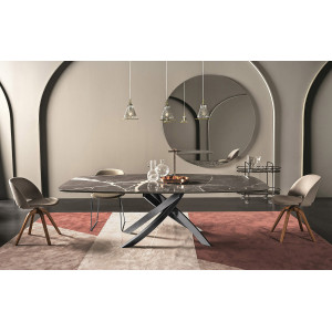 Bach 53.75 a botte fisso firmato Bontempi Casa è il tavolo di design 200x116 maestoso e incantevole, un tavolo di rilevante potenza scenica, manifesto dell’incessante ricerca dell’eleganza. La base scultorea tecnicamente evoluta e dalle forme morbide crea un gioco di pieni e di vuoti che rendono il tavolo imponente visivamente leggero. Bach viene proposto con struttura in acciaio laccato sabbia, ottone scuro, antracite e nero opaco mentre il piano da 200x116 è disponibile in cristallo trasparente extra chiaro, legno, Superceramica e Supermarmo. Vestito con differenti tipologie di piano assume l’identità più consona ad ogni tipo di ambiente rappresentando una vera icona di design contemporaneo, scegli la qualità, scegli il design made in Italy!