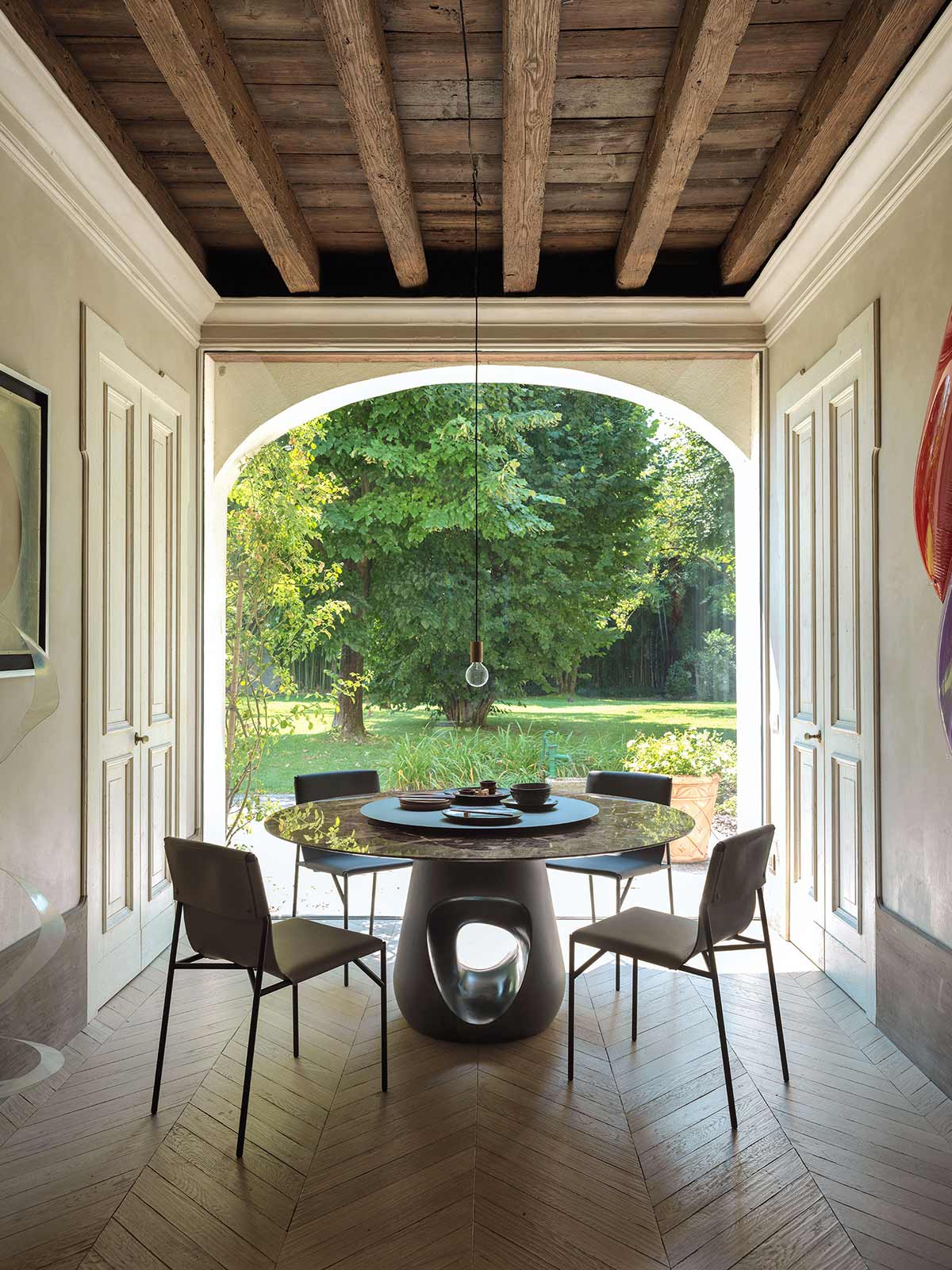 Barbara Tavolo in marmo di Horm è il tavolo di design con top ovale o rotondo in marmo Marquinia o Emperador e con basamento centrale in cemento. Il prodotto trae libera ispirazione dalle opere della scultrice inglese Jocelyn Barbara Hepworth (1903-1975), e dal suo incessante studio sulla relazione tra l’uomo, l’ambiente naturale ed i materiali. La forma scultorea, le dimensioni generose e i marmi pregiati contribuiscono a dare al tavolo un aspetto lussuoso e contemporaneo, dall’indubbia personalità. Barbara è disponibile anche con top in noce o rovere.