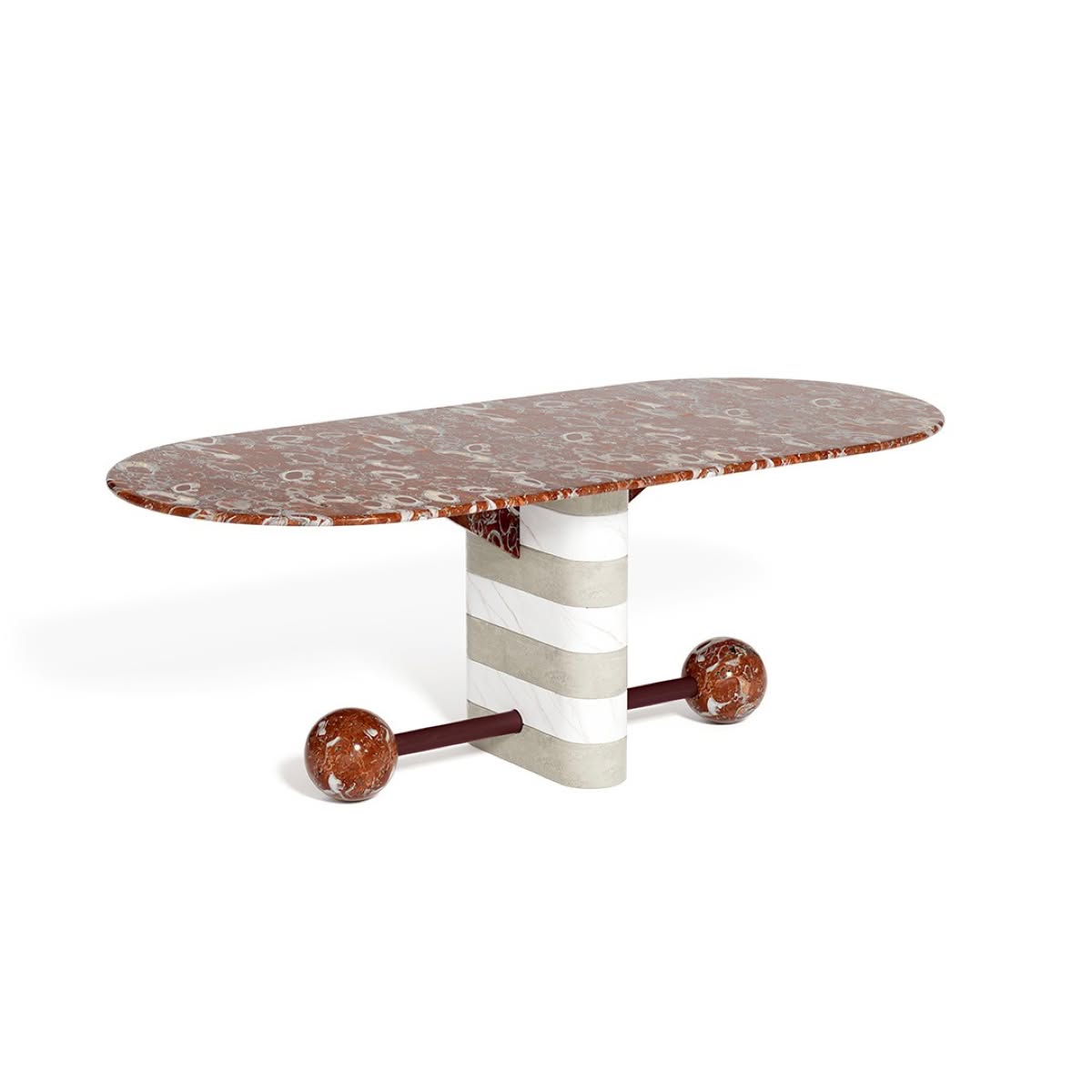 Memphis Milano Sebastopole Tavolo di Michele De Lucchi è un tavolo di design da pranzo in marmo. Con la sua unica gamba cilindrica e i materiali preziosi, Sebastopole di Michele De Lucchi è tavolo possente, prezioso, che non passa certo inosservato per la forma d’impatto, subito riconoscibile. Chissà se il nome rimanda a Sebastopoli, città della Crimea contesa tra Russia e Ucraina, teatro di feroci battaglie. E probabilmente anche alle lotte di Memphis contro il design funzionalista.