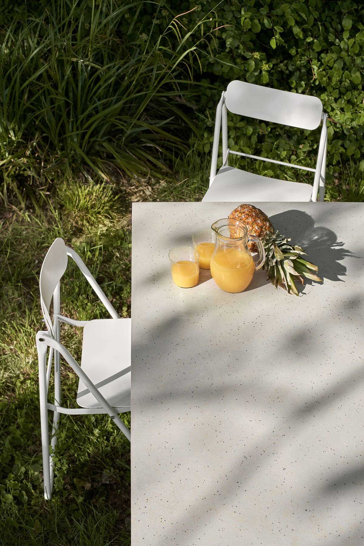 ILtavolo 2.0 Tavolo l 370 è il tavolo di design in alluminio 100%, materiale che lo rende leggero e sostenibile. Per uso indoor e outdoor. Disponibile in quattro misure. Finiture metallizzate: argento, oro. Finiture opache: materico effetto cocciopesto ed effetto cocciobianco. Bianco RAL classic 9016. Finiture lucide: foglia oro. Accessori: versione con due ruote in alluminio che ne agevolano lo spostamento. Le ruote sono dotate di o-ring in gomma nera che le rendono adatte a qualsiasi tipo di pavimentazione ed evitano i graffi. Passacavi in alluminio opzionale. Un tavolo che desidera essere al passo con i tempi. Un tavolo che è ben più di un’evoluzione, perché frutto di ascolto, ricerca, studio, di un progetto fortemente voluto da Lapo Ciatti e dal suo team per presentare un prodotto che fosse risposta concreta ai nuovi bisogni: adattabile, flessibile e dall’anima green. Dalle linee essenziali come il suo predecessore ILtavolo, ILtavolo 2.0 si distingue per essere interamente realizzato in alluminio, caratteristica che lo rende non solo leggero e adatto all’uso sia indoor che outdoor ma soprattutto 100% riciclabile L'attenzione sempre maggiore che abbiamo verso uno sviluppo sostenibile traspare anche nella scelta delle finiture. Accanto al classico bianco, alla sofistica foglia oro e alle vernici metallizzate oro e argento, ILtavolo 2.0 può essere rivestito da due tipologie di malta ecologica, estremamente innovative. Nel 2023 proprio per questo tavolo è stata infatti sviluppata la finitura effetto cocciopesto che, se da un lato vuole essere un omaggio ai colori del paesaggio toscano, dall’altro è espressione di ricerca e innovazione. Conosciuto sin dai tempi dei Fenici, perfezionato nell’impasto dai Romani che lo utilizzavano come impermeabilizzante, il cocciopesto tradizionale è composto da frammenti di tegole e mattoni, uniti a malta a base di calce, ed è ancora oggi largamente utilizzato come rivestimento per pavimenti sia interni che esterni, e per la copertura di pareti in ambienti umidi. Nella sua versione 2.0 utilizzata per ILtavolo 2.0 viene trasformato in una speciale malta ecologica a base microbiotica. Nell’impasto composto da polimeri nobili, sabbie di quarzo e carbonato di calcio vengono infatti inseriti dei microrganismi – largamente utilizzati nell'agricoltura biologica per le loro proprietà antiossidanti – al fine di migliorarne la compattezza e la resistenza a urti e abrasioni. Il materiale così realizzato – nelle pigmentazioni rossa, bianca e grigia – è ignifugo, impermeabile ed è totalmente privo di resine, calce, gesso e cemento. La lavorazione è ad acqua senza l’uso di solventi chimici e consente quindi il completo riutilizzo o riciclo di tutti i suoi componenti. Nel 2024 è stato invece presentato Corckrete, materiale all'avanguardia a base sughero. Declinabile anch'esso in tre colori (beige, grigio e tortora) è una finitura dalle molteplici proprietà che unisce un aspetto materico, quasi minerale, a una consistenza piacevole al tatto. Eco-friendly e minimal nel design, ILtavolo 2.0 si contraddistingue anche per la sua praticità di utilizzo. È infatti disponibile un set opzionale di ruote da applicare a due delle quattro gambe del tavolo che lo rendono agevolmente spostabile all’interno dello spazio. Un tavolo nomade che risponde alle nuove esigenze arredative di spazi sia residenziali che contract. Un prodotto versatile capace di adattarsi alle necessità di progetti contemporanei in continua evoluzione.