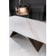 Thanos OM/398/MC è l'esclusivo tavolo fisso griffato Stones proposto con una elegante struttura in metallo verniciato marrone e piano a botte 200x110 in ceramica calacatta. Essenzialità geometrica e linearità sono scelte di un linguaggio progettuale improntato all'eleganza, ma connotato anche da una solida concretezza, sottolineata dall'importante basamento che esalta la matericità del piano in ceramica effetto marmo. Thanos è un tavolo davvero unico, ideale per soddisfare i gusti più ricercati e rendere prezioso qualunque ambiente living