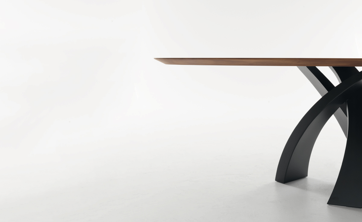 Tavolo Eliseo Wood T8028FSW Tonin Casa | Tavolo rotondo-ovale fisso con base in metallo laccato e piano rivestito in legno