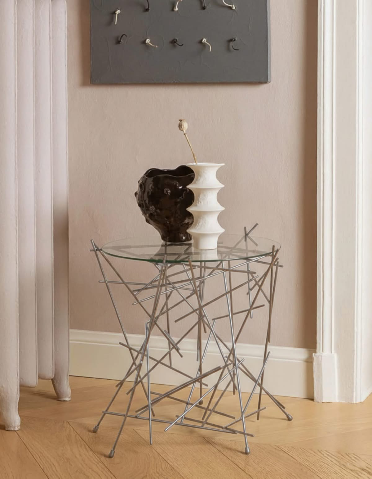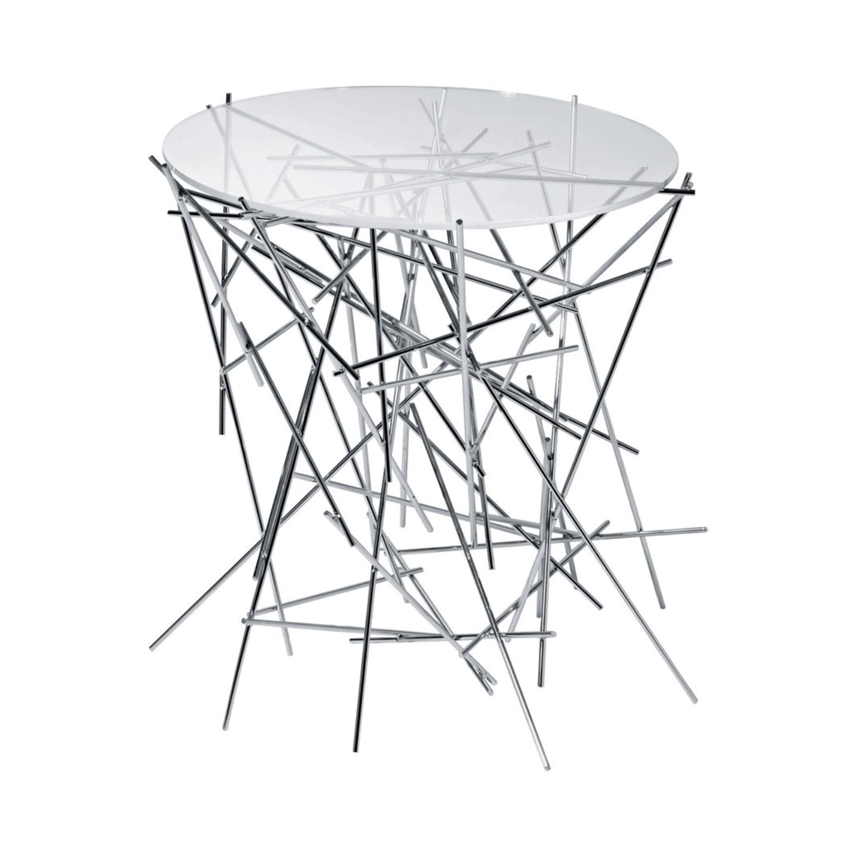 Alessi FC09 Blow Up Tavolino è il centrotavola di design in vetro e acciaio cromato. La novità, la freschezza e la poesia dominano l’approccio estetico-costruttivo ideato dai fratelli Fernando e Humberto Campana per la serie “Blow Up”, in cui la forma degli oggetti è disegnata dal gioco di pieni e vuoti generato dai bastoncini di acciaio assemblati quasi casualmente, tema riconoscibile qui come in molti dei progetti dei geniali brasiliani. Nella serie Blow up la luce diventa un elemento progettuale fondamentale, in particolare nell'interazione con il design del tavolino, filtrando tra le aste sospese a mezz'aria e attraversando delicatamente il piano in vetro sovrastante.