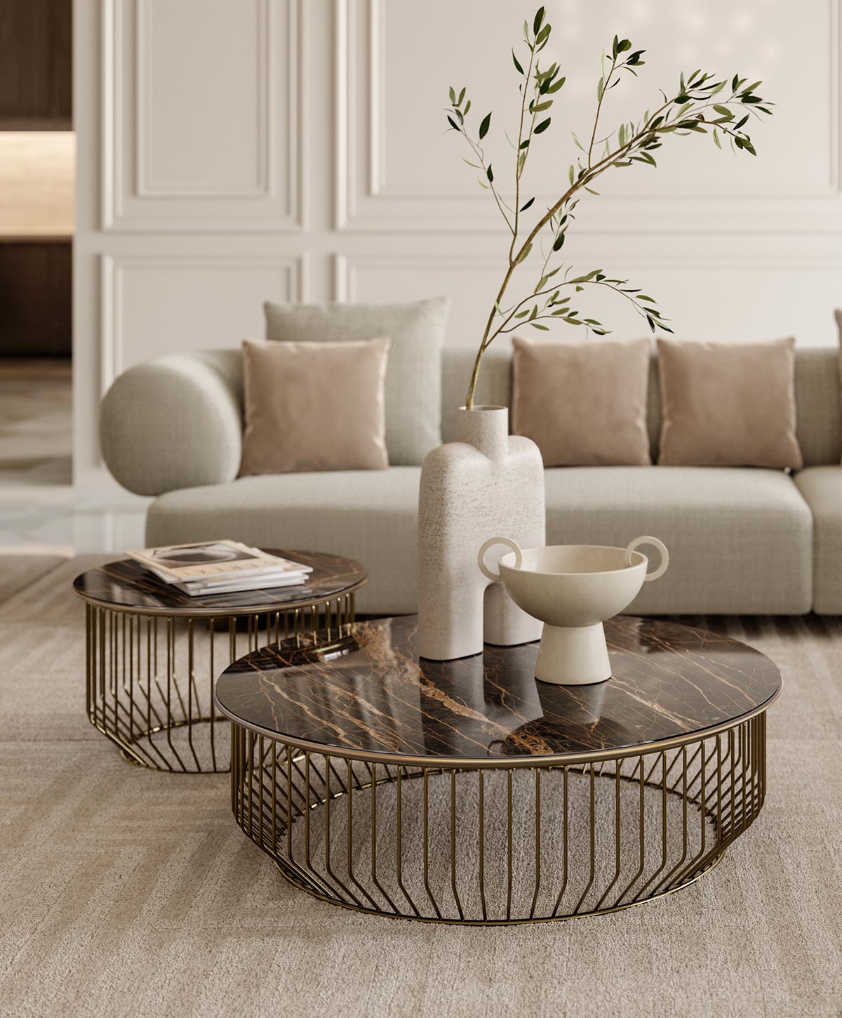 Circus 08.33 è il tavolino tondo Ø100 cm. Bontempi Casa, capace di esaltare l’eleganza minimalista, difatti la sua forma rotonda si adatta armoniosamente a tutti gli ambienti. La struttura ha un aspetto boho-chic e giocoso, le sottili aste tubolari in metallo che sorreggono il piano in SuperMarmo, disegnano una gabbia circolare di grande effetto decorativo, che lascia filtrare la luce alleggerendo la figura. Allestito con differenti tipologie di piano assume l’identità più consona ad ogni tipo di ambiente rappresentando una vera icona di design contemporaneo, scegli la qualità, scegli il design made in Italy!
