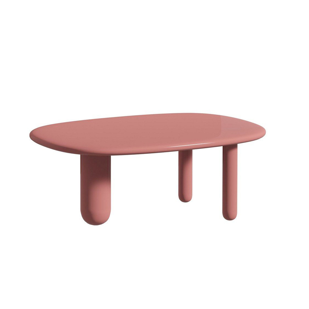 A completare la collezione, una serie di tavolini realizzati in tre differenti dimensioni e contraddistinti da un inusuale appoggio a terra su tre gambe. Anche per i tavolini, gli elementi distintivi sono rappresentati dalla forma morbida ed arrotondata del piano, realizzato in MDF con bordo sagomato, e dal generoso diametro delle gambe in legno massello tornito. La finitura è una laccatura lucida in tre varianti di colore nelle tinte pastello. Uso solo interno.