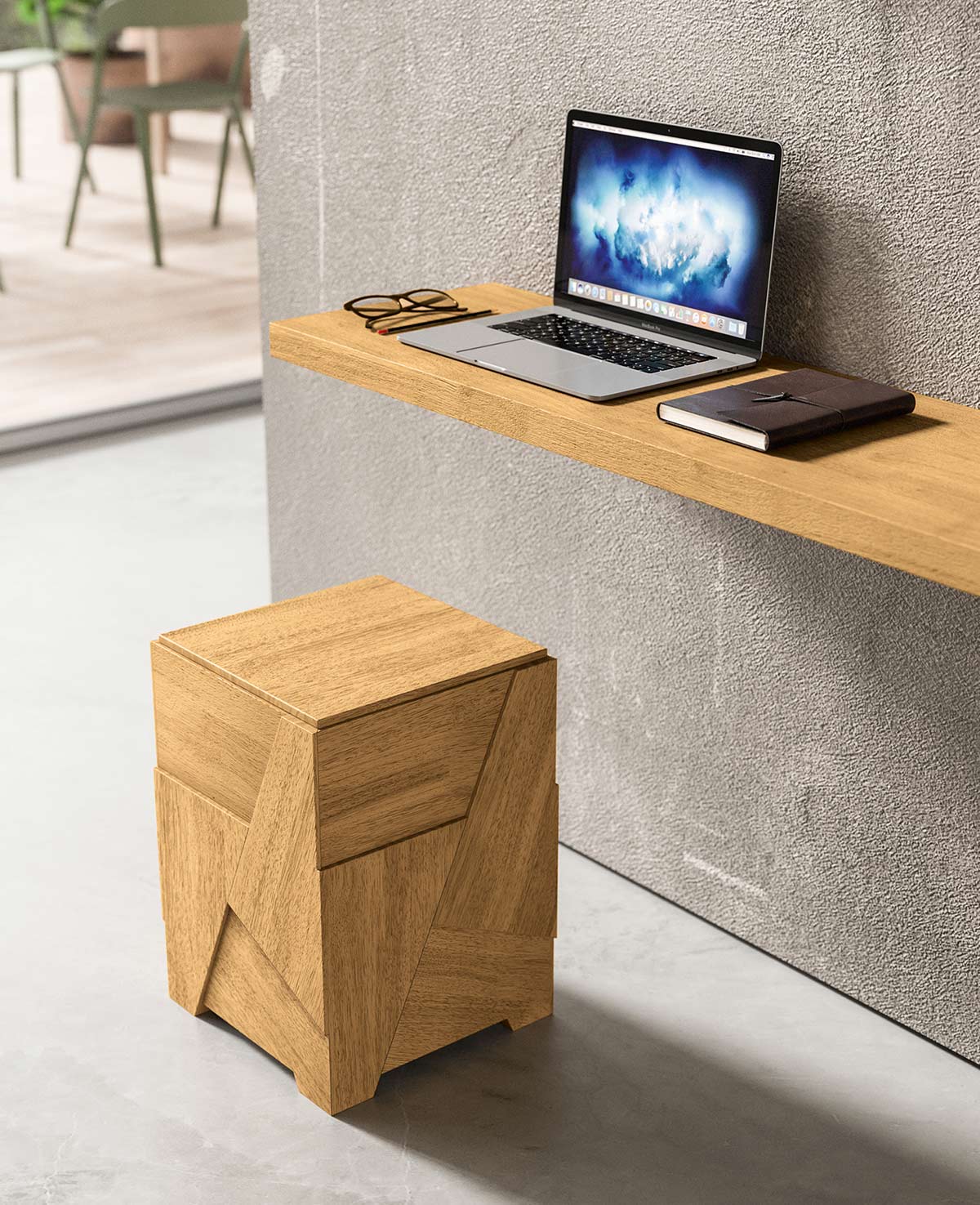 Tavolino Bliss FGF Mobili | Tavolino design, in legno massello, moderno, sgabello