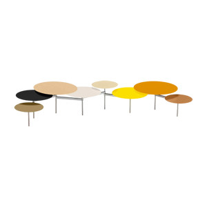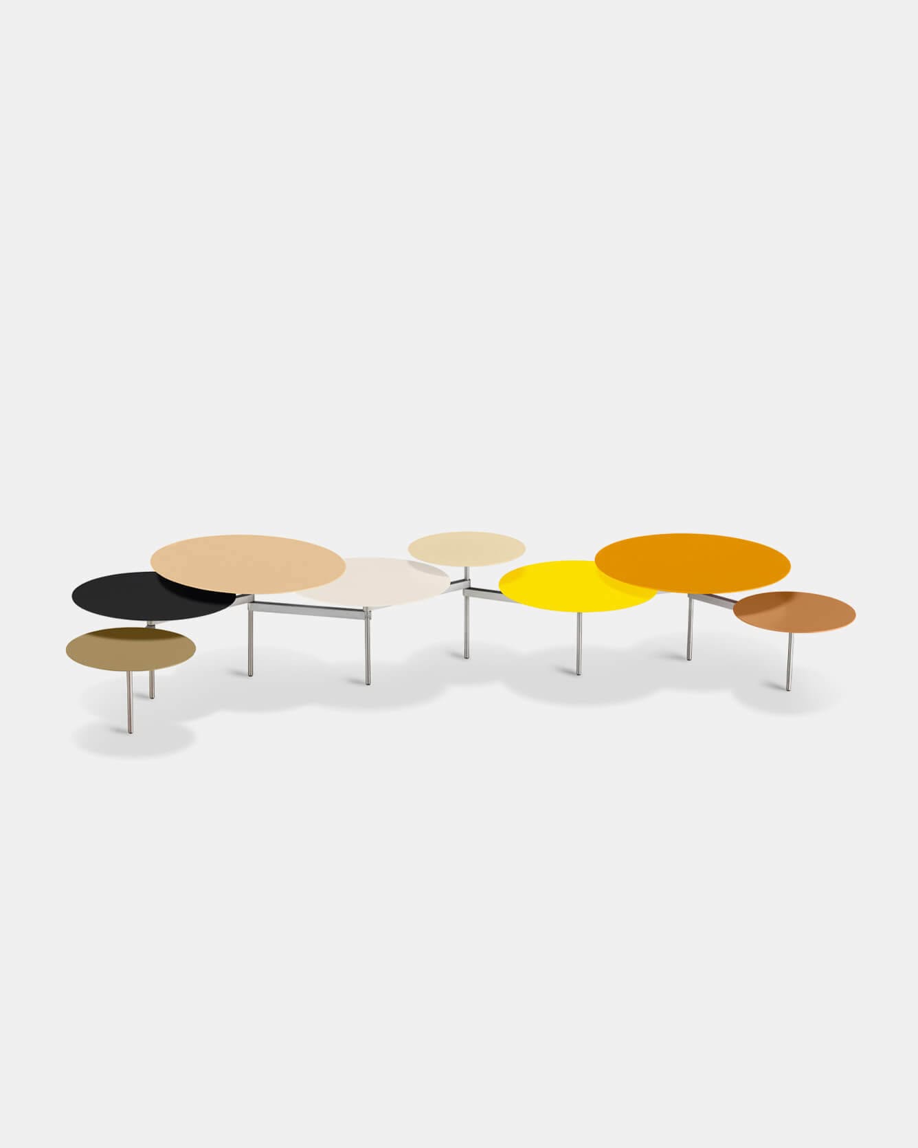 Meritalia Snake 8 Tavolino è la tavolino di design basso polimorfo progettato da Carlo Contin, composto da otto superfici circolari collegate tra loro, snodabile in configurazioni sempre diverse. Disponibile in verniciato bianco, in versione multicolore o in acciaio lucidato a specchio. Orgogliosamente anti-coerente, Meritalia® si emancipa dalla tradizione statica dell’arredamento e presenta un oggetto che, a sorpresa, celebra l’irrequietezza. Negando la fissità innocua del tavolino basso, in genere un mero ‘accessorio’ che completa il classico angolo soggiorno, Meritalia® crea con Carlo Contin Snake: un tavolino polimorfo che si afferma come protagonista della scena e di ogni stanza. Il tavolino Snake striscia nel salotto, si conquista il suo spazio attorcigliandosi in configurazioni sempre differenti. Otto superfici circolari a cinque altezze diverse, disarticolate e sempre articolabili, si snodano a seconda del gusto e del guizzo di chi lo sceglie. Possedere Snake significa essere incantatori d’arredo, far danzare i moduli a cerchio di tre diametri – 30, 40 e 50 cm – senza mai doversi abituare a una composizione permanente. Gli otto piani d’appoggio possono essere in verniciato bianco o in versione multicolore, che ne esalta il continuo divenire. Infine, è anche disponibile in acciaio lucidato a specchio: una variante che esalta ancora di più il dinamismo del tavolino, riflettendo la luce e catturando i movimenti dei corpi che lo circondano.