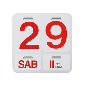 Formosa Calendario perpetuo Anodizzato Naturale-Scritte Rosse di Enzo Mary per Danese Milano è un calendario di design da parete costituito da una base attrezzata in alluminio che fa da supporto ai fogli mobili in pvc che definiscono la data. Il carattere tipografico utilizzato è l’Helvetica, grande classico della produzione di Mari e Danese Milano.