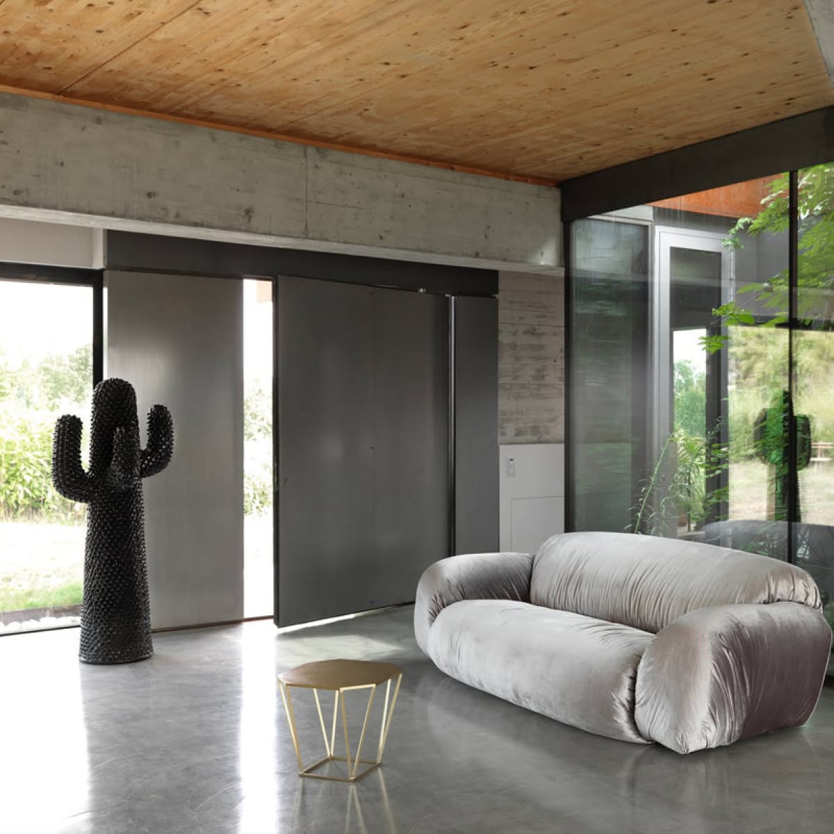 Alto come un essere umano, CACTUS®, inizialmente concepito come uno eccentrico appendiabiti, è diventato negli anni un emblema del design radicale italiano. Nato dalla mente di Guido Drocco e Franco Mello nel 1972, questo capolavoro del design ha rivoluzionato il modo di concepire gli spazi domestici. Realizzato a mano in morbido poliuretano, è formato da quattro bracci e 2165 bugne dipinte con la vernice Guflac®, la speciale finitura brevettata da Gufram. NEROCACTUS, edizione del 2010, cattura l'attenzione grazie alla propria tonalità scura ed enigmatica.