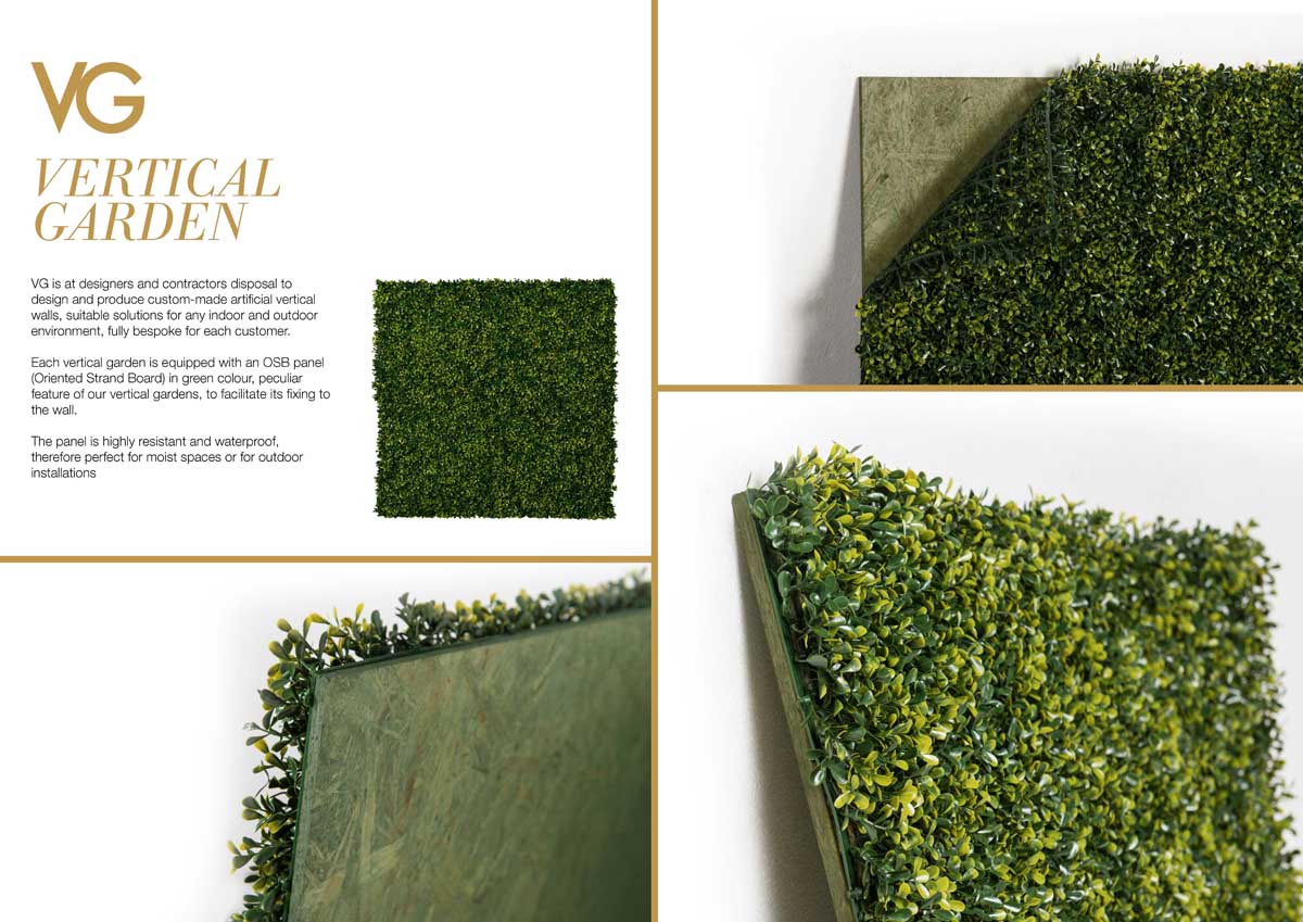 Un inno alla natura e alla sua bellezza. La terra stimola la fantasia verso nuove e spettacolari forme di architettura vegetale. Le pareti vegetali VG sono composte da pannelli modulari di facile installazione e che non richiedono alcuna manutenzione. Sorprendenti installazioni verdi, completamente personalizzabili, che riescono a creare un design unico, originale ed elegante per spazi indoor: abitazioni private, uffici, spazi commerciali e contra