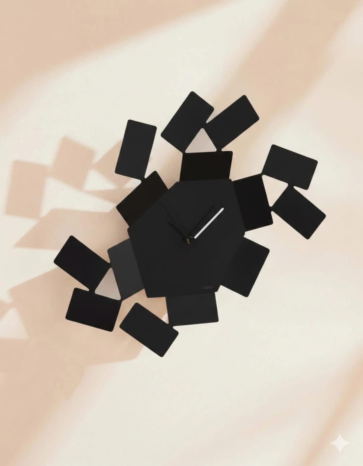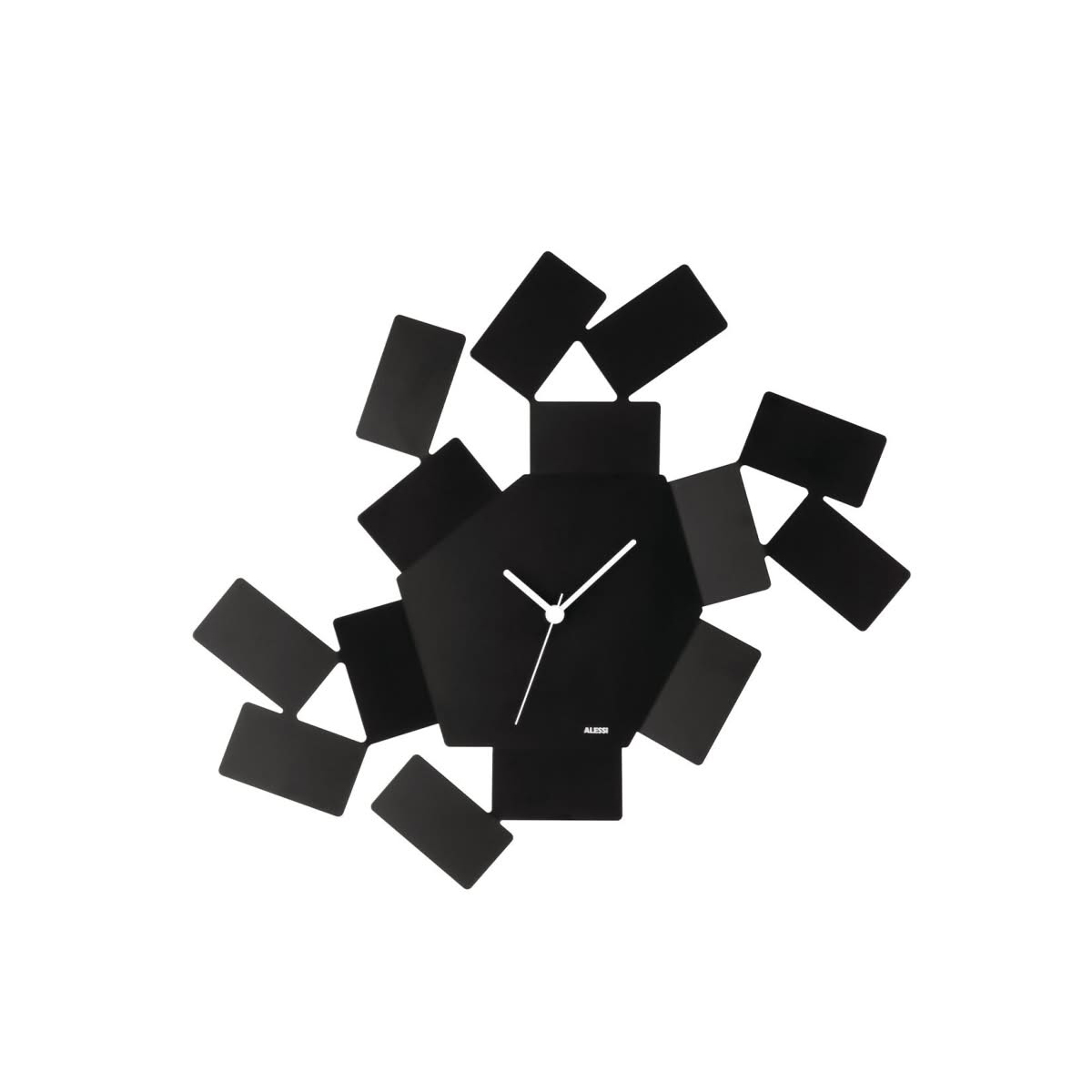 Alessi MT19 B La Stanza dello Scirocco Orologio da parete Nero è l'orologio di design in acciaio colorato con resina epossidica, nero. La Stanza dello Scirocco è un luogo magico che si trova nelle vecchie e grandi case di campagna in Sicilia, un luogo dove ci si rifugia aspettando che il vento si plachi. L’architetto siciliano, Mario Trimarchi si è ispirato a questo ricordo d’infanzia per disegnare l’orologio da parete. Le forme irregolari del quadrante esagonale e delle tessere laterali creano vuoti e generano giochi di luce e ombra che aggiungono magia e movimento all’oggetto.