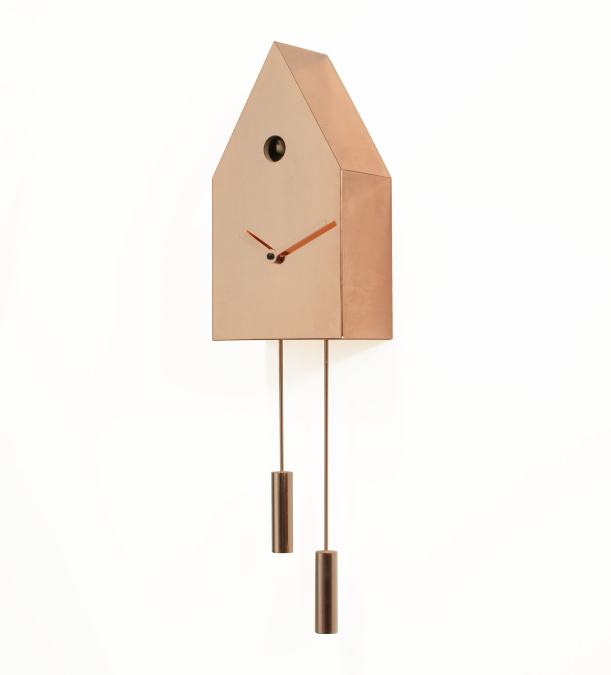 L' orologio 24K by Progetti è l'orologio di design che cattura la tua attenzione per la sua sofisticata eleganza raffinata senza tempo. Realizzato interamente in lamiera proposta nella finitura oro è un orologio a cucù essenziale, a forma di casa che sembra nascere da un lingotto. Ponendosi come oggetto d'arredamento visibile ma senza eccessi risulta alla vista delicato ed allo stesso tempo dotato di forte carattere. Dotato di movimento al quarzo a batteria e di sensore foto sensibile in grado di fermare automaticamente la suoneria in assenza di luce.