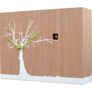 L' Orologio Cucurukù 1768 Progetti by Progetti è l'orologio di design per la tua casa semplice e liceare. Omaggio alla natura, in particolare al periodo autunnale e invernale quando gli alberi perdono le foglie, il legno diventa protagonista e i colori prima caldi e poi freddi della neve prendono il sopravvento. Sul ramo più lungo poggia il cucù, al riparo dalle intemperie. Le lancette, con la forma imprecisa propria dei rami, possono essere di colore arancione, bianco o verde. Movimento al quarzo a batteria. Un sensore sensibile alla luce ferma automaticamente la suoneria in assenza di luce.