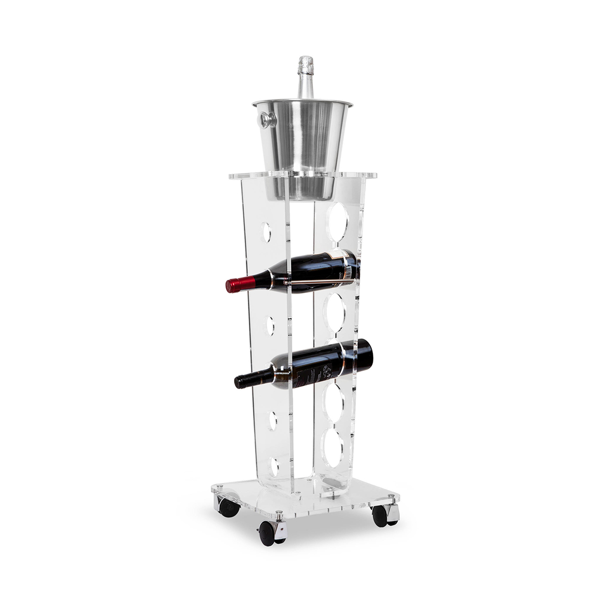 Ice Tower Portabottiglie con rotelle Vesta Home | Portabottiglie design in cristallo acrilico trasparente a colonna