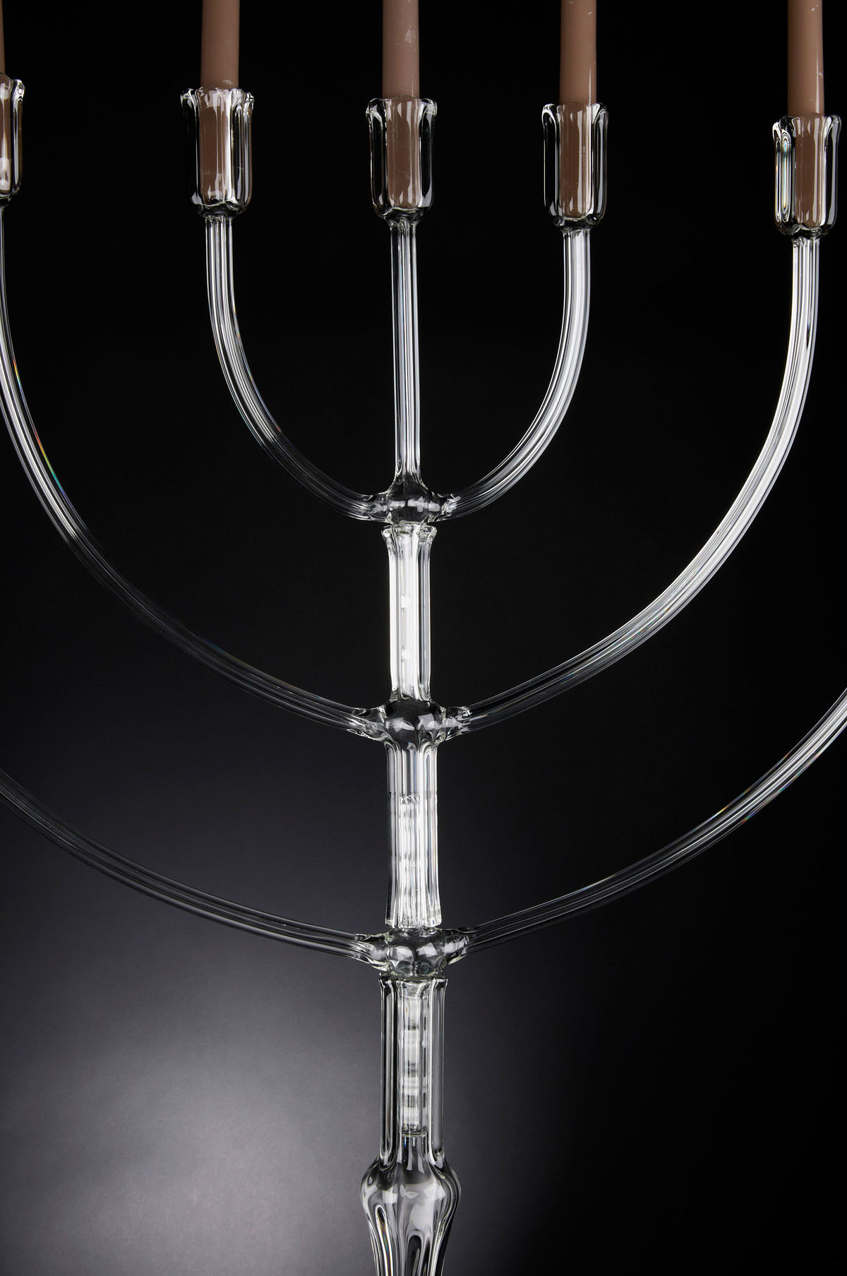 Candelabro Ebraico 7 bracci Pirex H 110 80x25 naturale VGnewtrend | Portacandele in cristallo, da esterno, da parete, design, esterno, design, acciaio, da tavolo, decorativi