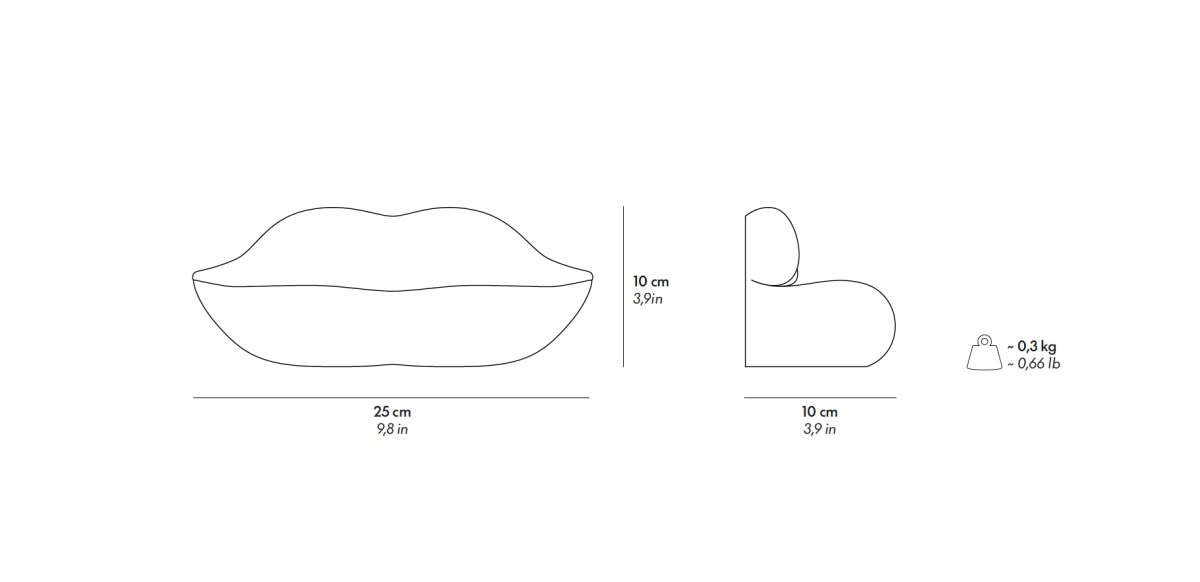 Guframini Bocca Blue è un soprammobile di design che reinterpreta il mito del design pop attraverso una veste cromatica intensa e magnetica. Questa miniatura in scala 1:8 riproduce la sensualità delle labbra dello Studio65 in un blu profondo che ne esalta il profilo scultoreo e la morbidezza del poliuretano. Rifinito a mano con estrema dedizione, l'oggetto mantiene intatto lo spirito rivoluzionario dell'originale del 1970, offrendo ai collezionisti un pezzo di storia dell'arte domestica capace di dialogare con gli interni più contemporanei e ricercati.