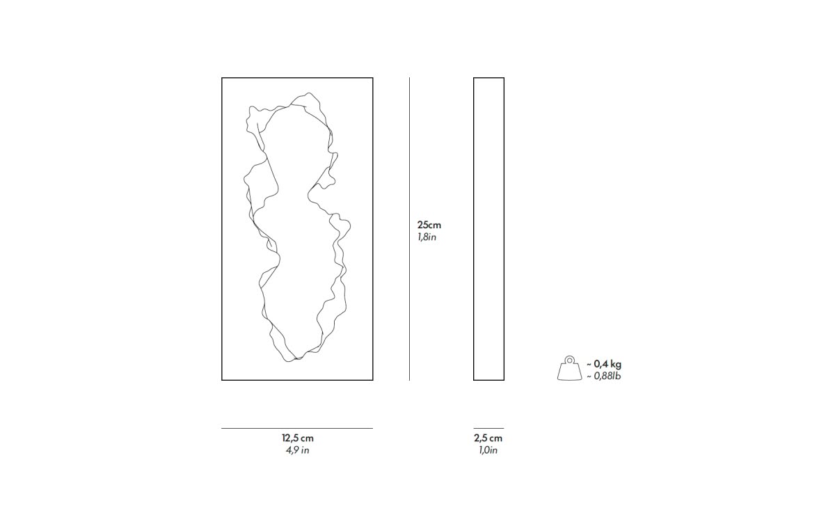 Guframini Broken Mirror White è il soprammobile di design che ti porta nell'affascinante mondo di GUFRAMINI, una straordinaria collezione che condensa la magia e il fascino intramontabile delle più celebri opere di Gufram in intricate forme in miniatura. Realizzati con straordinaria cura in scala 1:8, questi pezzi, seppur piccoli, sono riccamente dettagliati e costituiscono una testimonianza eloquente dell'ineguagliabile abilità artistica e della profonda immaginazione che caratterizzano il design italiano. Attraverso l’estrema attenzione al dettaglio, i GUFRAMINI mettono in luce l’essenza dei classici originali, perfettamente riprodotti, offrendo ad appassionati e collezionisti un’esperienza intima con le icone che hanno plasmato il paesaggio culturale ed estetico del loro tempo. La cura dei particolari eleva questi mini capolavori al ruolo di opera d’arte unica e a sé stante. Con GUFRAMINI scoprirete il sorprendente connubio di competenza tecnica e creatività che ha reso questi oggetti dei simboli eterni del Radical Design Italiano. Scoprite mini BROKEN MIRROR, una illusione frantumata trasformata in un’opera d’arte. Questo elemento riflettente abbandona il convenzionale e adotta forme irregolari e distorsioni affascinanti, per formulare una dichiarazione audace sulla natura della percezione e sulla realtà stessa. La collezione GUFRAMINI rende omaggio alle leggende del design miniaturizzando capolavori iconici per gli amanti del design. Se ogni pezzo racconta la sua storia, l’intera collezione tesse la narrazione della grande storia del design radicale italiano.