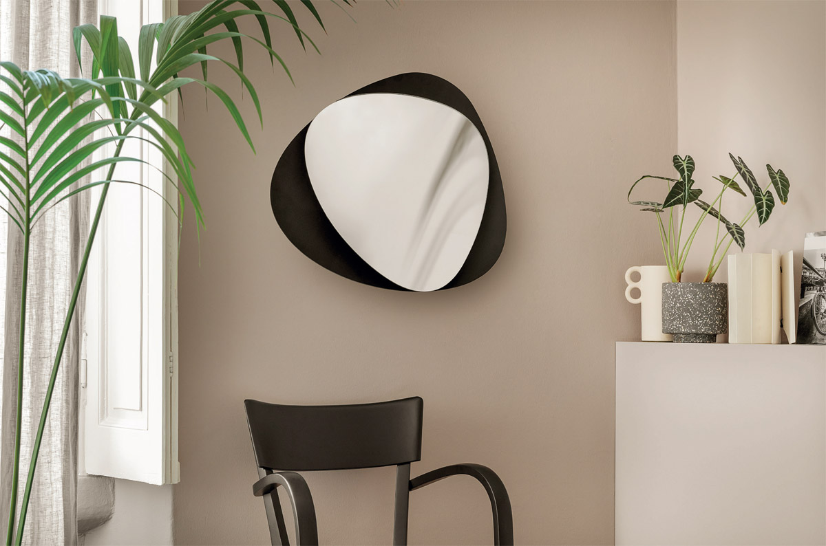 Alessi FM25 B Colombina collection Specchio è lo specchiodi design da parete con cornice in acciaio verniciato con resina epossidica, nero. Lo specchio della collezione Colombina, che prende il nome dalla fortunata collezione disegnata da Doriana e Massimiliano Fuksas, viene presentato in una nuova versione, di dimensioni ridotte e con una cornice in acciaio colorato che sostituisce quella in vetro della prima edizione presentata nel 2009. Queste piccole ma sostanziali varianti progettuali esaltano la morbida leggerezza del design immaginato dai designer. UN PETALO D’ACCIAIO. Lo specchio Colombina collection, dal nome della fortunata collezione disegnata da Doriana e Massimiliano Fuksas, si presenta in una nuova versione, dalle dimensioni ridotte e con una cornice in acciaio colorato che sostituisce quella in vetro della prima edizione presentata nel 2009. Queste piccole ma sostanziali variazioni progettuali valorizzano la morbida leggerezza del disegno immaginato dagli autori. NOTE DI DESIGN. Dinamico. Un oggetto che muta la sua immagine nel tempo: ruotando lo specchio sulla cornice si modifica la forma complessiva dell’oggetto, esaltandone l’alto valore formale. Poetici dettagli. Il richiamo formale ai petali dei fiori ritorna anche nel disegno delle piastre di fissaggio, una cura dei dettagli tipica dell’opera di Doriana e Massimiliano Fuksas. Realizzato in Italia, nello stabilimento Alessi a Crusinallo di Omegna. Particolarmente curato il sistema di fissaggio a parete: formato da piastre e componenti della stessa forma dello specchio, è stato studiato per permettere di appendere l’oggetto in modo facile e sicuro.