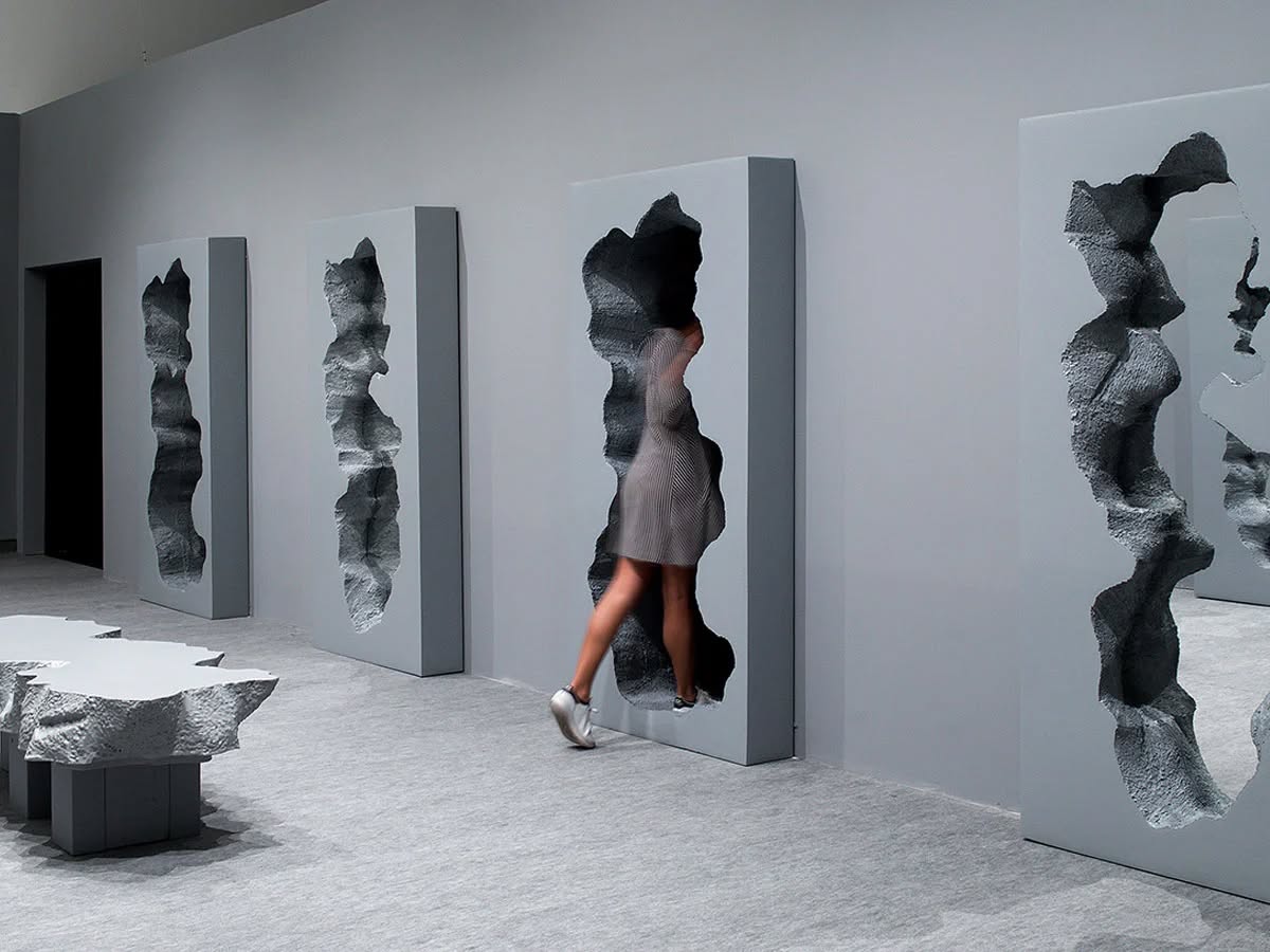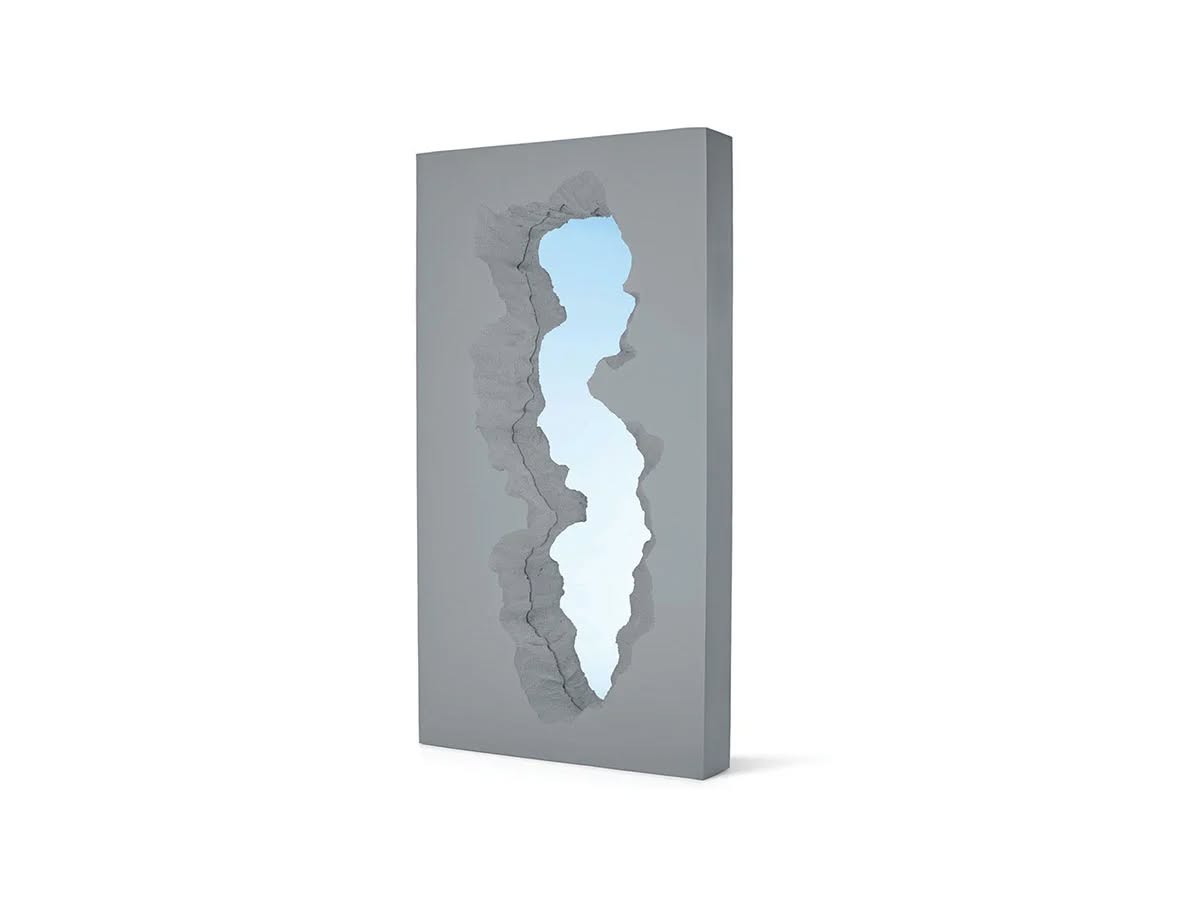"BROKEN MIRROR è più di una superficie riflettente. Sfidando la percezione convenzionale degli specchi si impone come un’opera d’arte ipnotica. Questo design innovativo, frutto della collaborazione tra Gufram e il duo newyorkese Snarkitecture, combina una superficie riflettente con una cornice in morbido poliuretano per creare l’illusione di un portale che si apre nella parete. Non solo riflette l’ambiente circostante, ma crea anche l’illusione che una stanza si fonda con un altro ambiente, regalando un’esperienza visiva dinamica e sorprendente." Snarkitecture