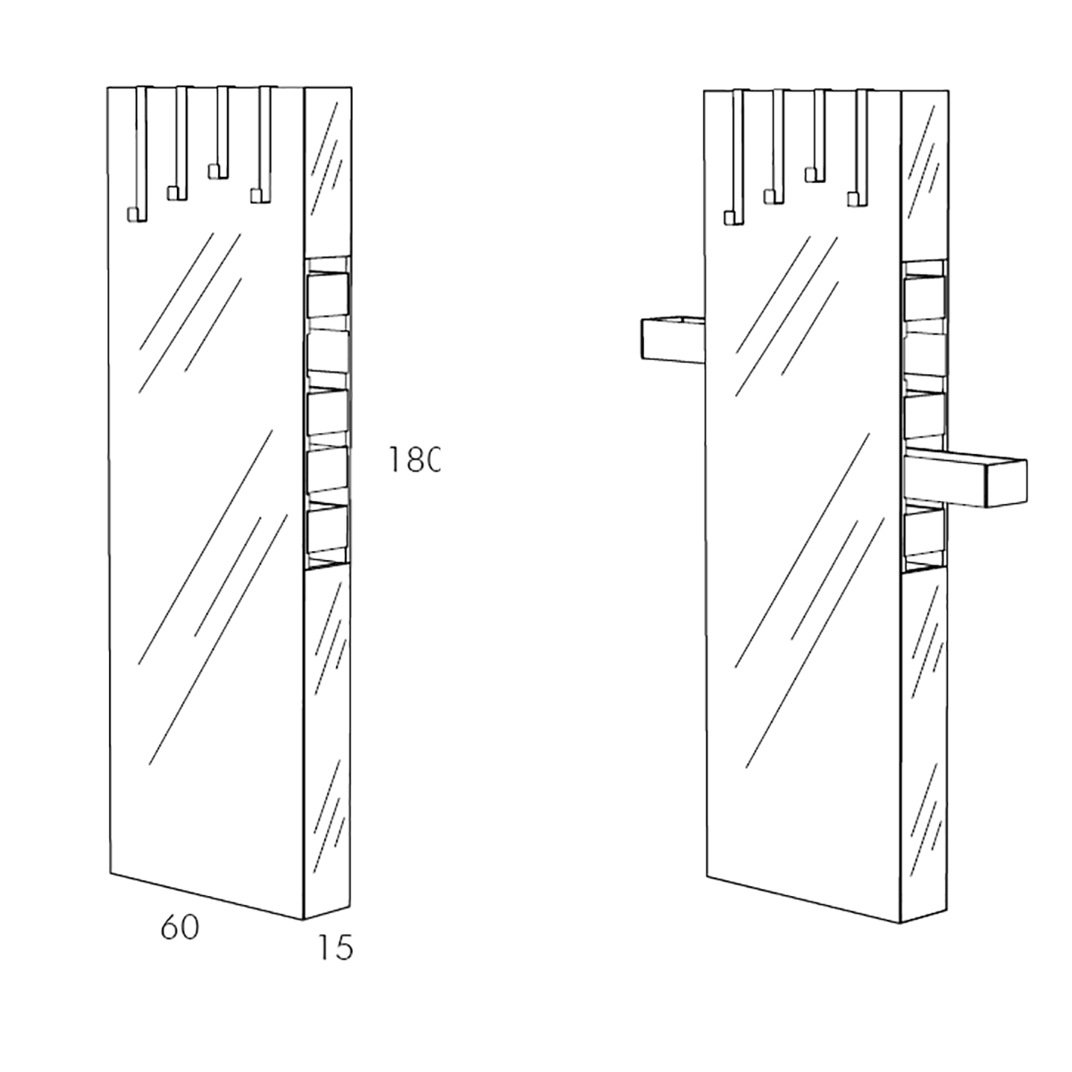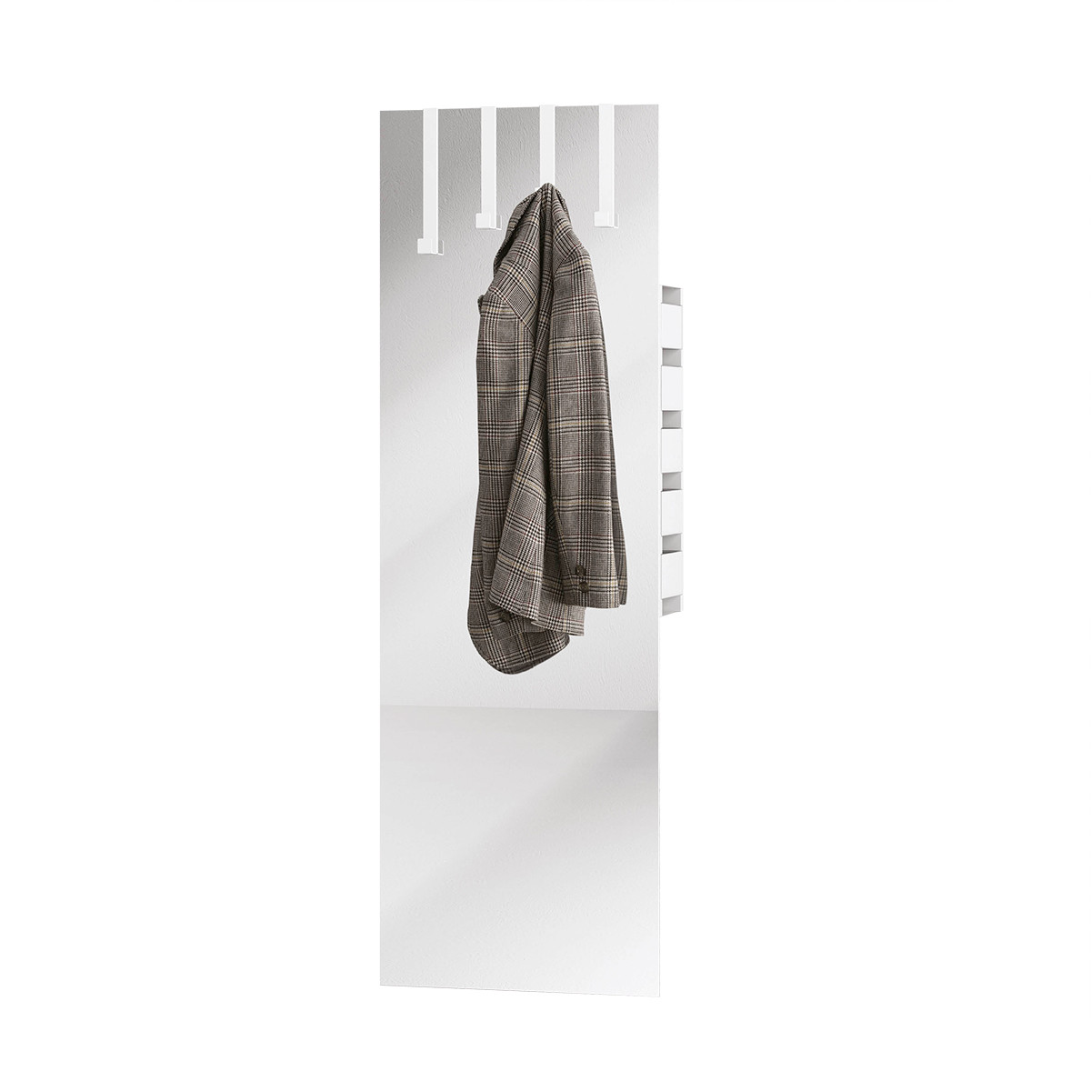 Betty Specchio a parete è lo specchio di design a parete, struttura in agglomerato di legno con 4 appendini (removibili) e 5 cassetti in metallo colore blanc, sistema di fissaggio a parete incluso. I cassetti si estraggono totalmente da entrambe i lati.