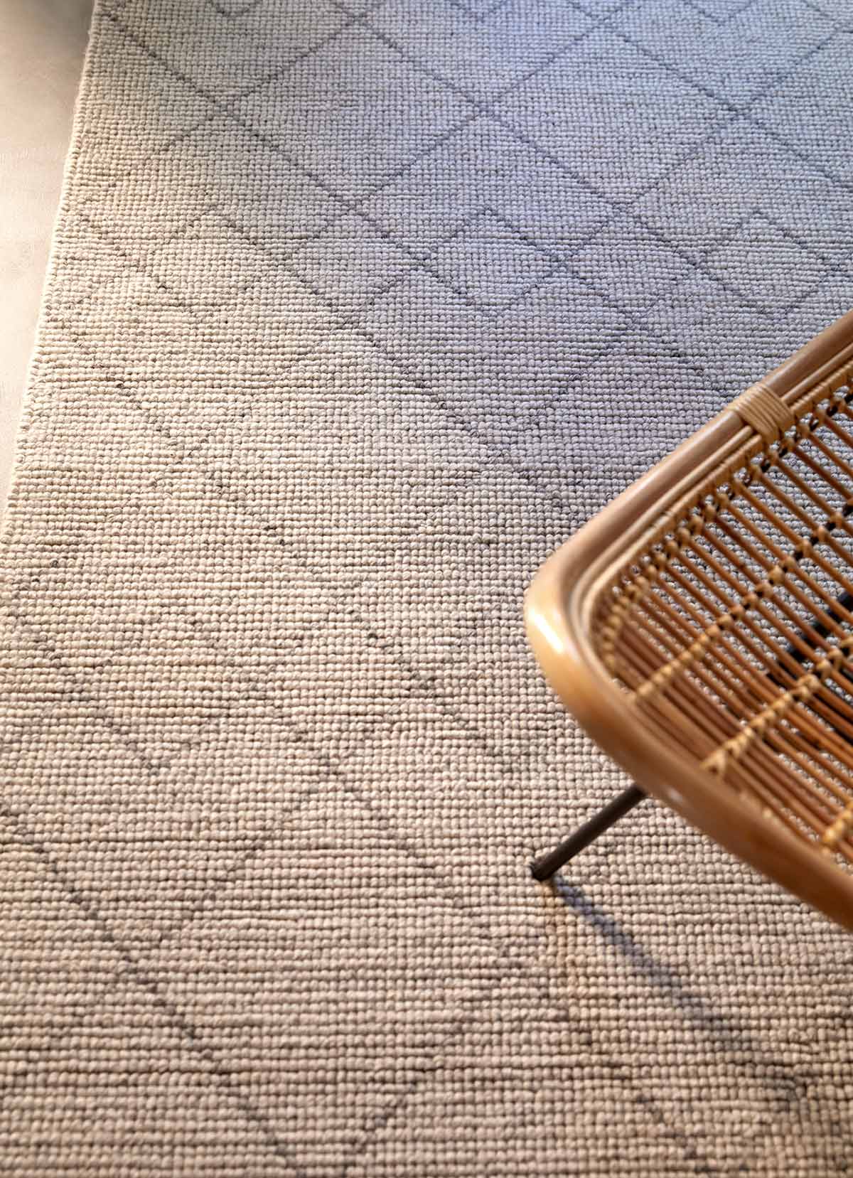 Geomy 2790 Rombi Tappeto 200x300 di Kuatro è il tappeto moderno artigianale realizzato con tessitura a mano in 100% lana con altezza 8 mm e lavorazione a tessitura geometrica con motivi a rombi in bianco e grigio.