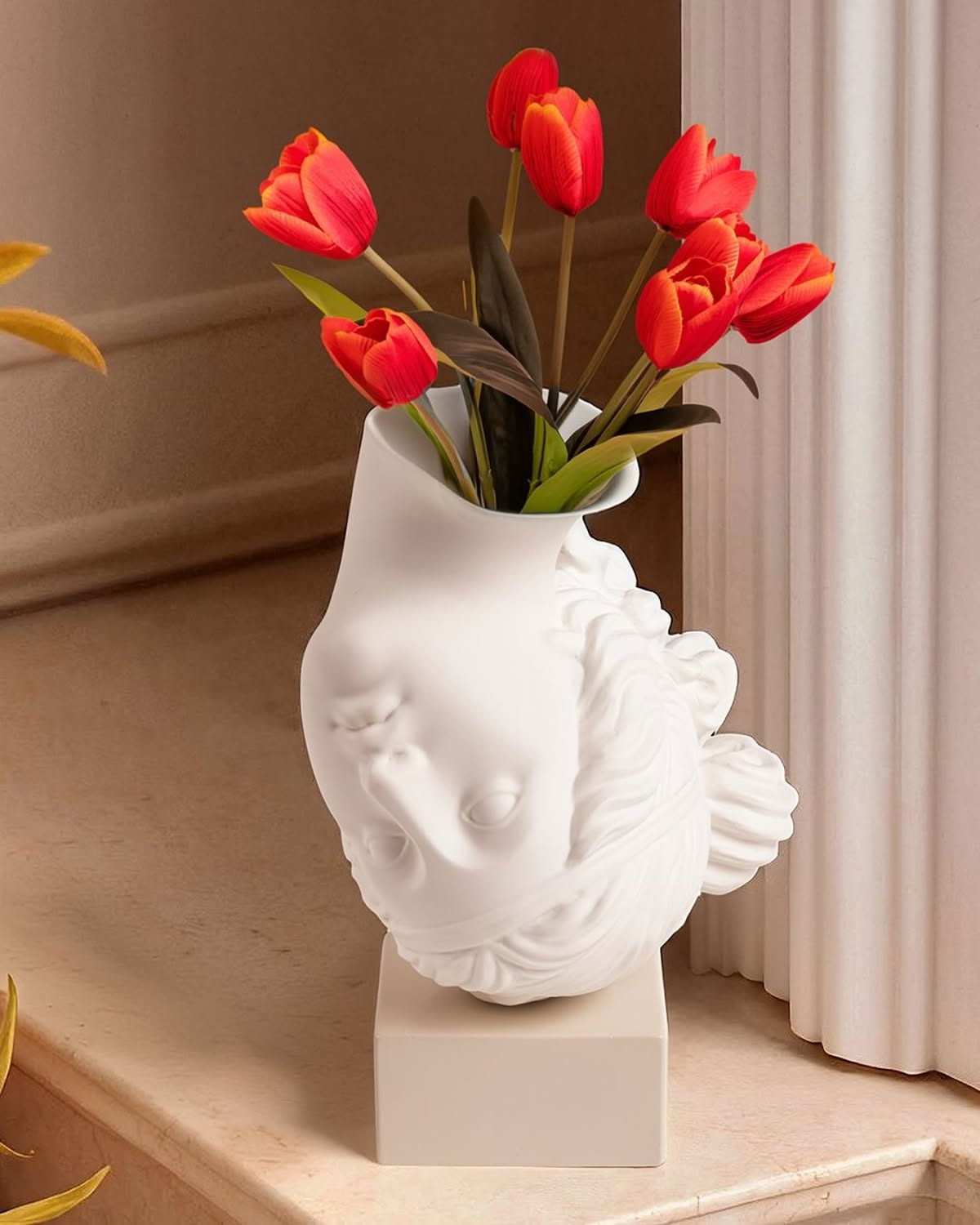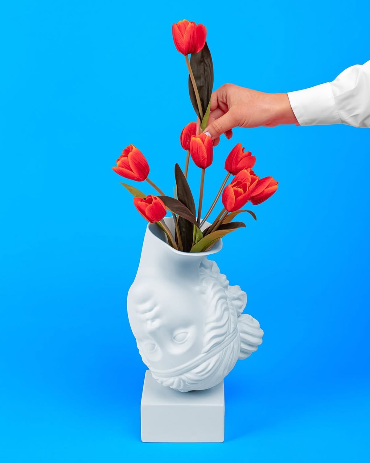 Amor Volat Vaso Seletti by Marcantonio è il vaso di design che sembra sfidare la gravità, una testa capovolta che trasforma una scultura classica in un simbolo di leggerezza. Ispirato a quel momento in cui innamorarsi ci fa sentire come se fluttuassimo nell'aria, in balia di un mondo più morbido, luminoso, magico. Amor Volat non è solo un vaso, è un omaggio a chi vive con il cuore in volo. E i fiori? Sono il linguaggio segreto delle emozioni!