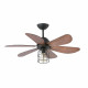 Ventilatore a soffitto Chicago S di Faro - Barcelona è il ventilatore da soffitto con luce di stile industriale e molto attuale. Questo ventilatore da soffitto moderno é ideale per ventilare superfici fino a 13m2. Si aziona con telecomando, incluso. Questo ventilatore da soffitto dispone di 3 velocitá regolabili, con un consumo di 15-26-49W e 136-192-2258 rpm secondo la velocitá prescelta. Flusso di aria: 96,71 m3 min / 3414 CFM. Addatto per soffitto inclinato.