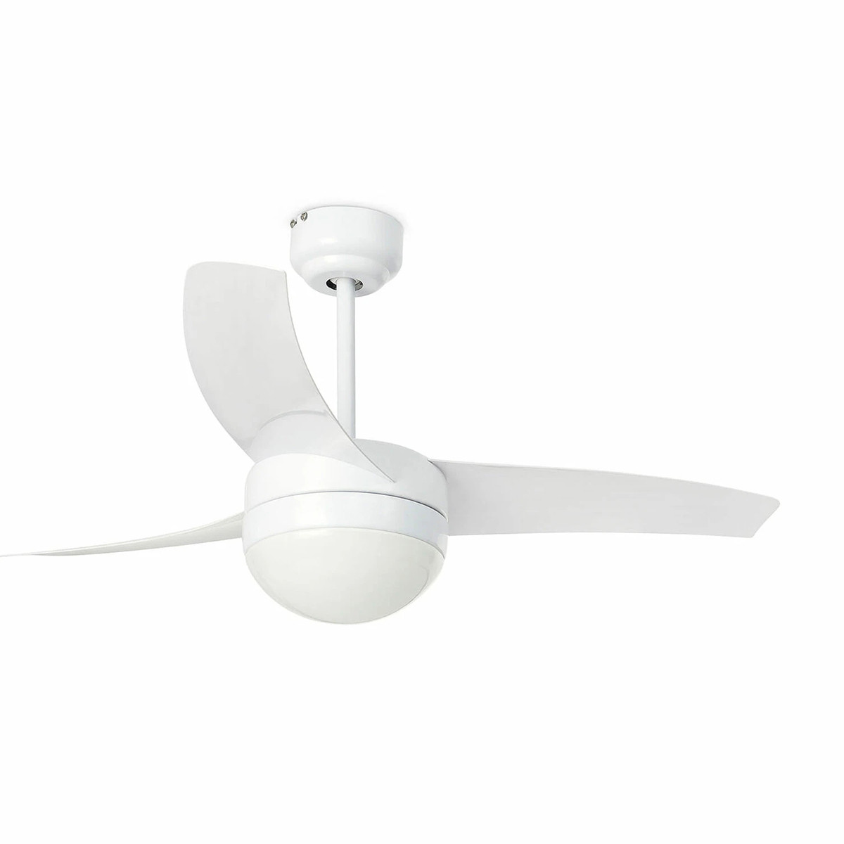 Ventilatore a soffitto Easy di Faro - Barcelona è il ventilatore da soffitto con luce e telecomando moderno con luce ideale per stanze fino a 13 m2. Motore fabbricato in acciaio, pale di ABS e diffusore di vetro opal. La finitura delle pale è bianco, non reversibili. Funziona con telecommando, incluso. Ha 3 velocità regolabili con un consumo di 11-23-68W e 105-185-285 rivoluzioni per minuto secondo velocità. Facile installazione. Questo ventilatore è addatto per soffitto inclinato.