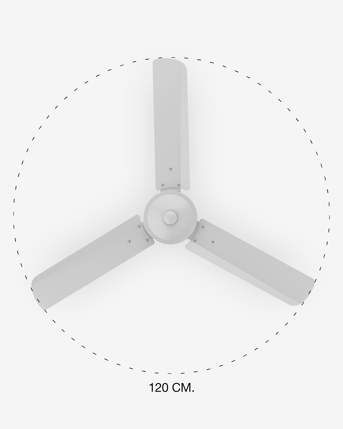 È molto importante scegliere la corretta dimensione del ventilatore, prendendo in considerazione le dimensioni della stanza. Il ventilatore taglia "M" è ideale per ambienti di dimensioni comprese tra 13 e 17,6 m² avendo ha un diametro di Ø107-131 cm.