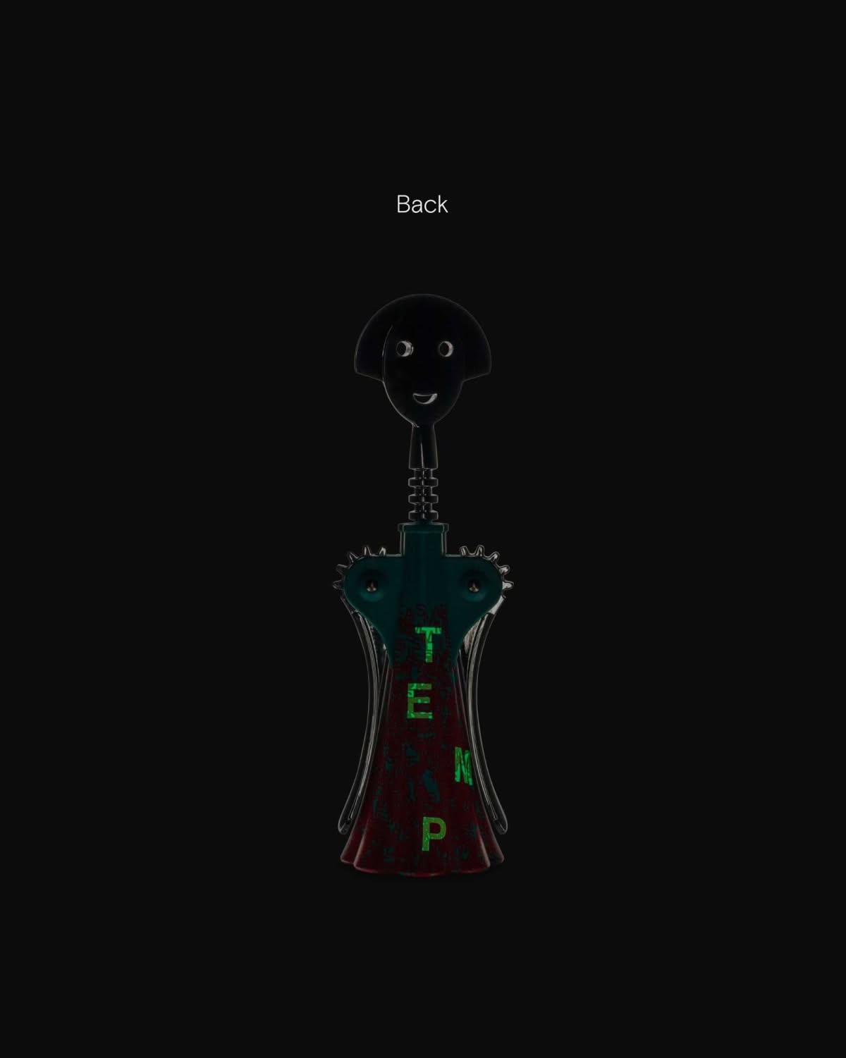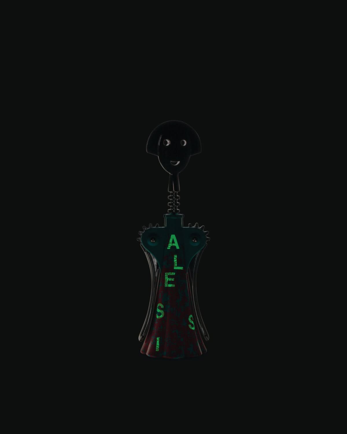 Best seller fin dalla sua prima produzione, nel 1994, il cavatappi Anna G. nasce da una memoria d’infanzia del suo autore, Alessandro Mendini: “mia nonna a tavola apriva la bottiglia del vino, mi era sempre sembrato una specie di balletto rituale: la testa che gira, le braccia che si alzano e si abbassano, il suono del tappo che esce dalla bottiglia.” Davanti al disegno di quell’insolito cavatappi Alberto Alessi non ebbe invece dubbi nel cogliere la somiglianza con la designer Anna Gili, amica dell’autore. Nel 2021 il suo inconfondibile sorriso torna con una piccola collezione di nuove versioni colore, omaggio alla ricerca cromatica del suo autore.