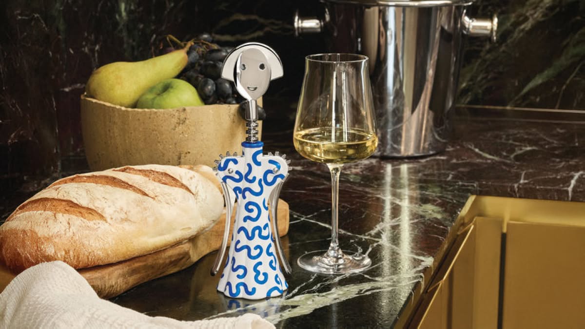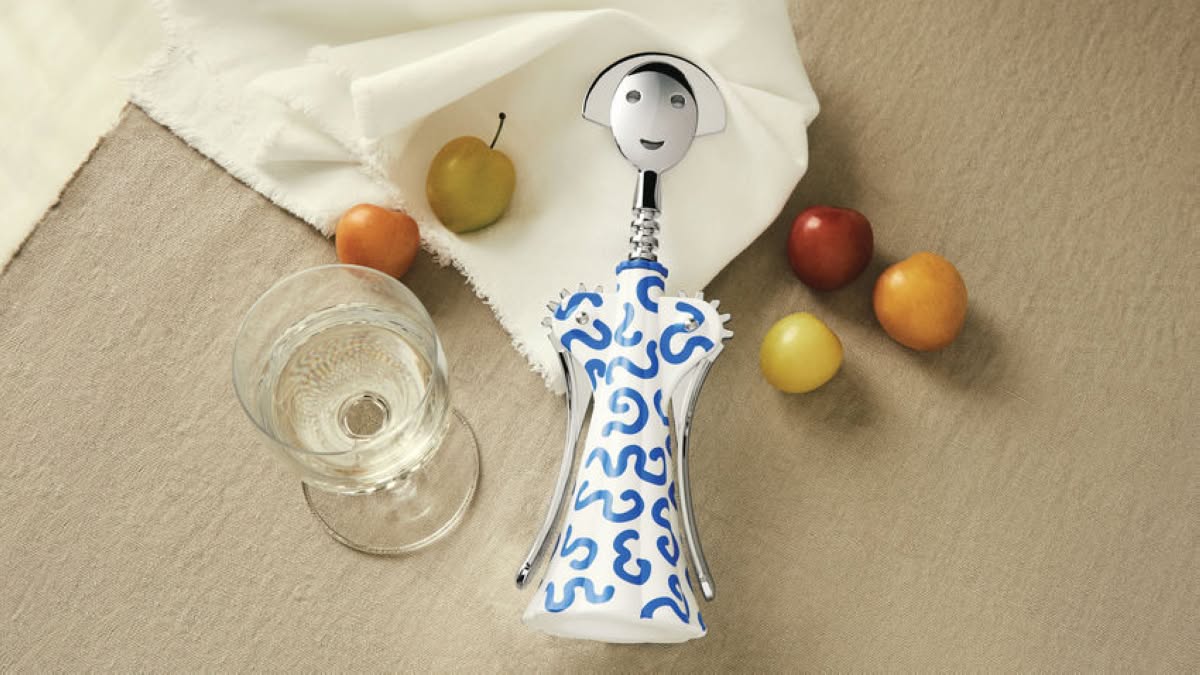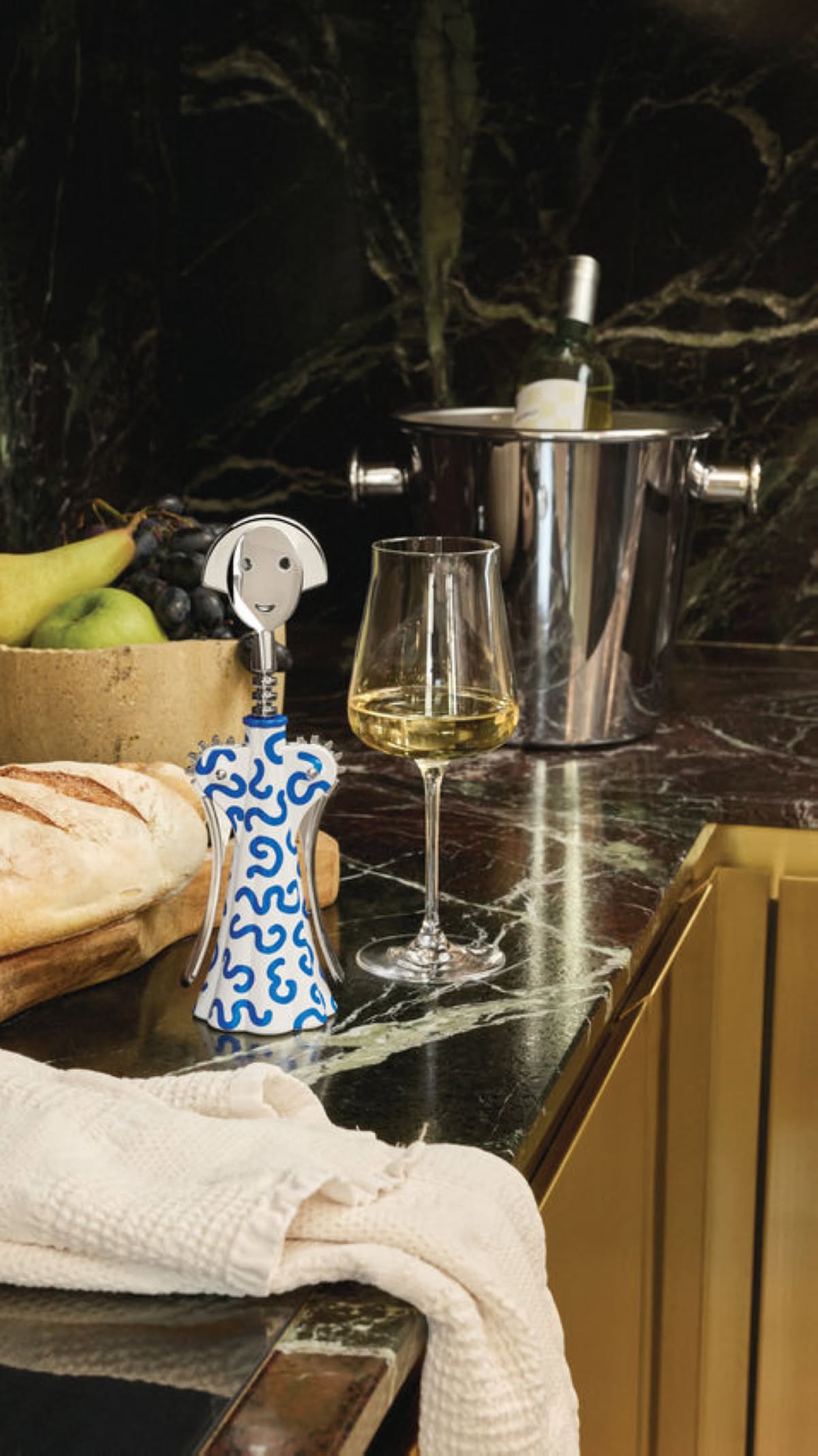 Best seller fin dalla sua prima produzione, nel 1994, il cavatappi Anna G. nasce da una memoria d’infanzia del suo autore, Alessandro Mendini: “mia nonna a tavola apriva la bottiglia del vino, mi era sempre sembrato una specie di balletto rituale: la testa che gira, le braccia che si alzano e si abbassano, il suono del tappo che esce dalla bottiglia.” Davanti al disegno di quell’insolito cavatappi Alberto Alessi non ebbe invece dubbi nel cogliere la somiglianza con la designer Anna Gili, amica dell’autore. Nel 2021 il suo inconfondibile sorriso torna con una piccola collezione di nuove versioni colore, omaggio alla ricerca cromatica del suo autore.