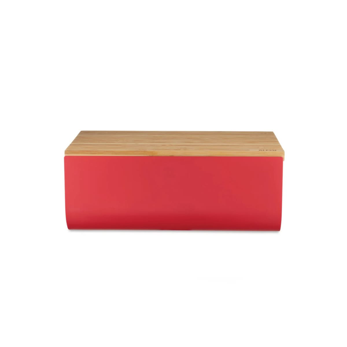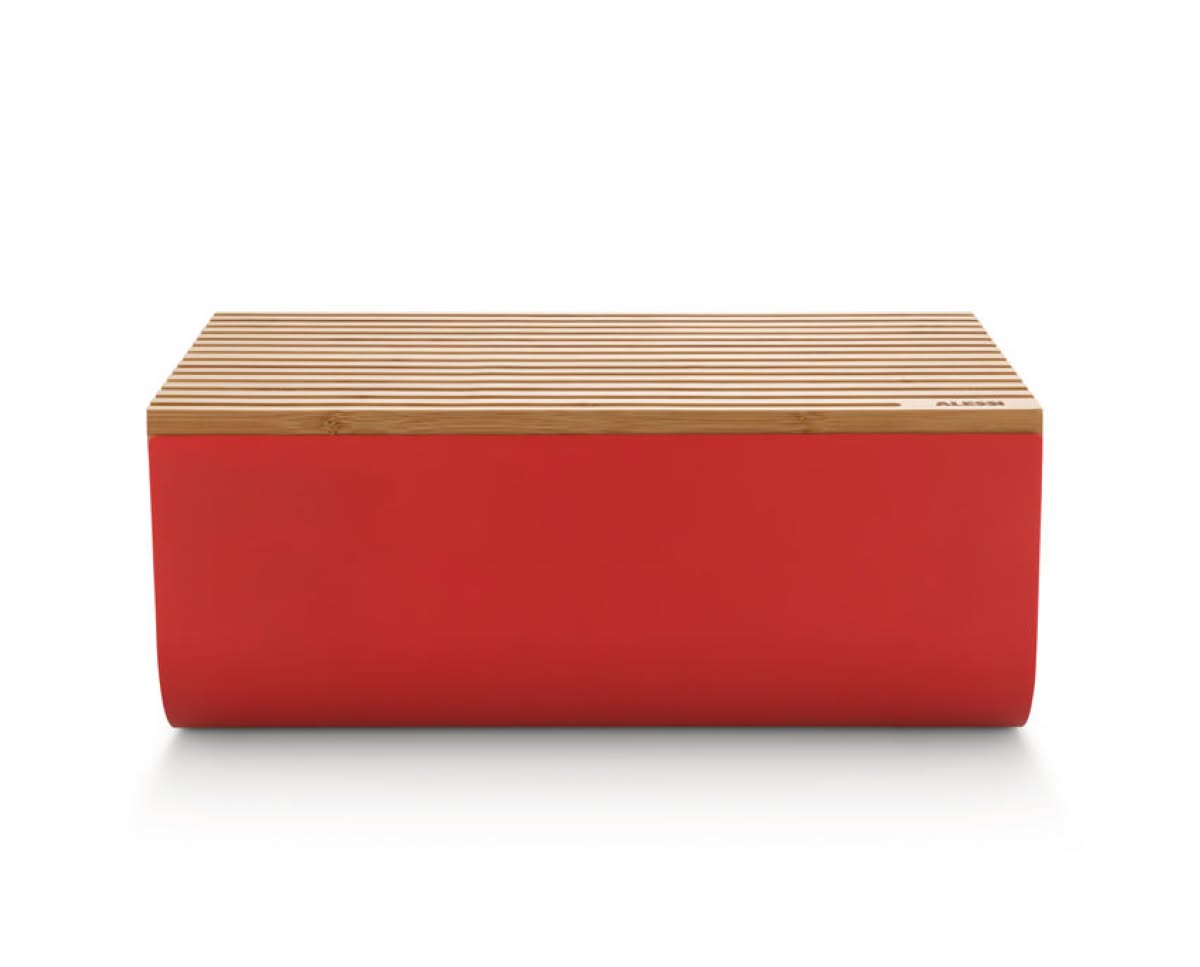 Alessi BG03 R Mattina Cassetta per pane in acciaio colorato Rosso BIG-GAME | Cassetta per pane in acciaio colorato con resina epossidica, Rosso con tagliere in legno di bambù