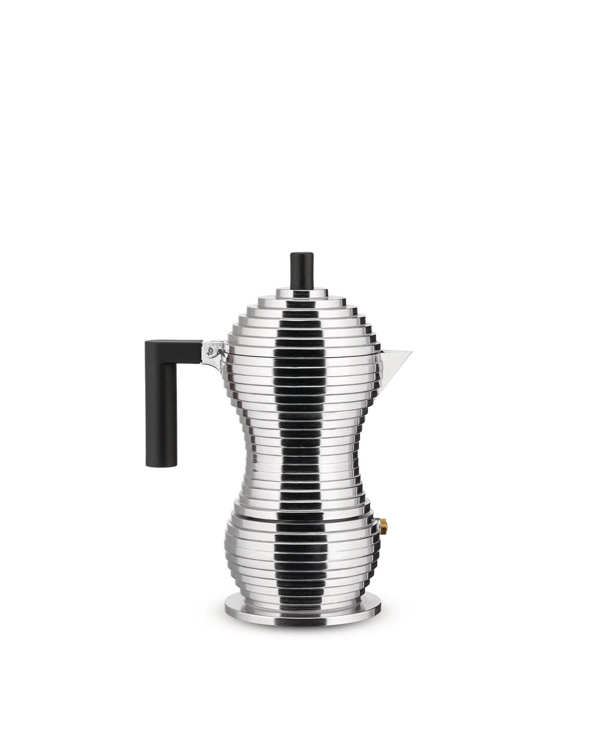 Alessi MDL02/3 B Pulcina Caffettiera espresso Alluminio-Nero 3 Tazze Michele De Lucchi | Caffettiera espresso in fusione di alluminio manico e pomolo in PA