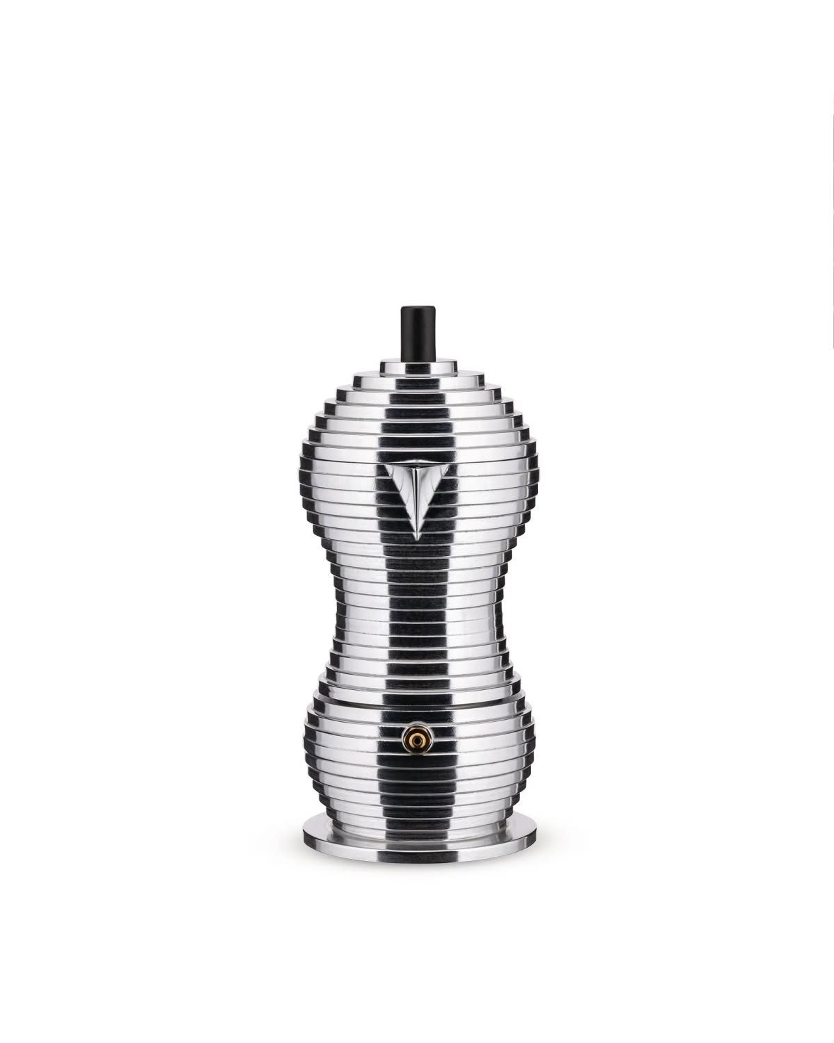 Alessi MDL02/3BFM Pulcina Caffettiera espresso Alluminio-Nero 3 Tazze Induzione Michele De Lucchi | Caffettiera espresso in fusione di alluminio manico e pomolo in PA nero