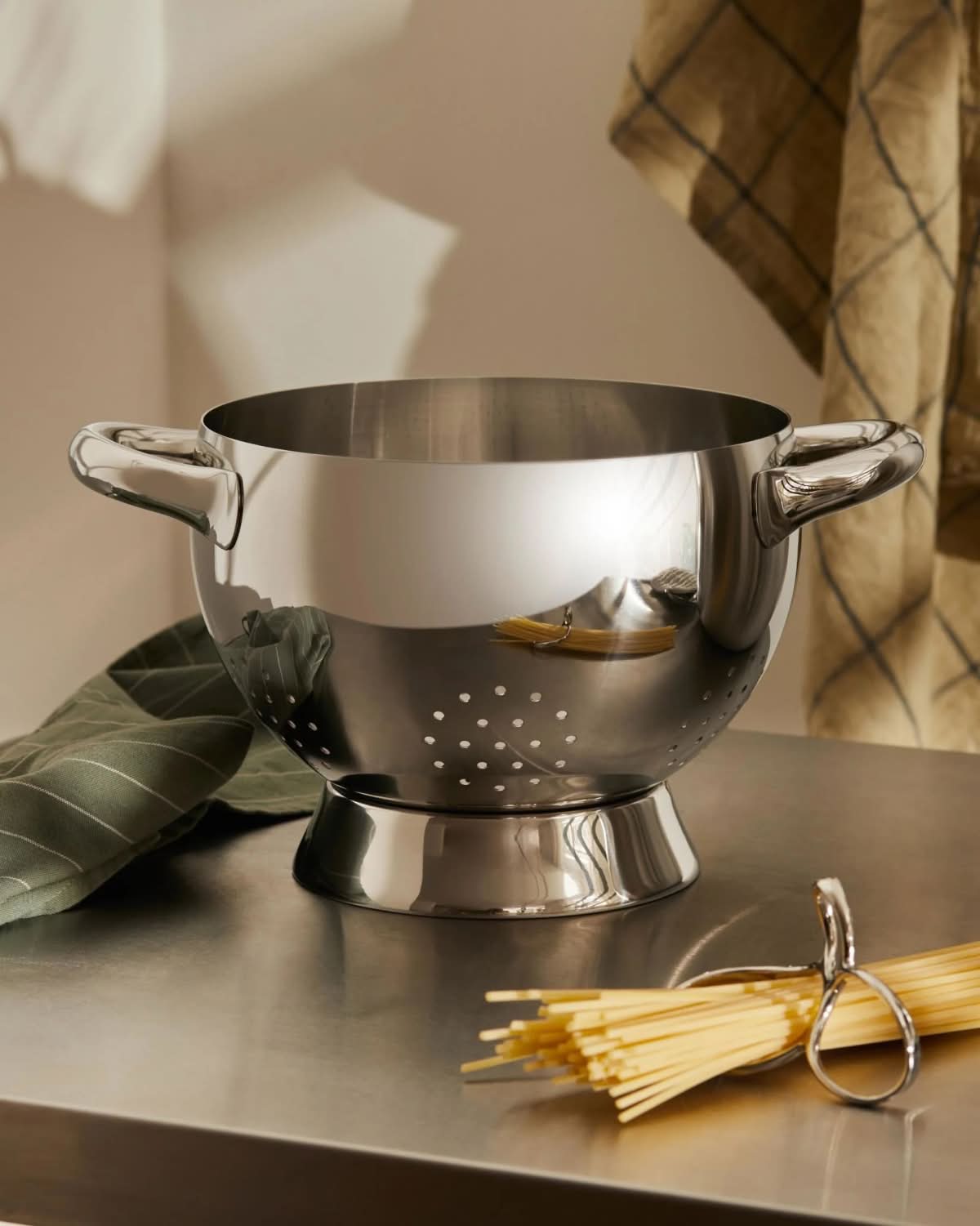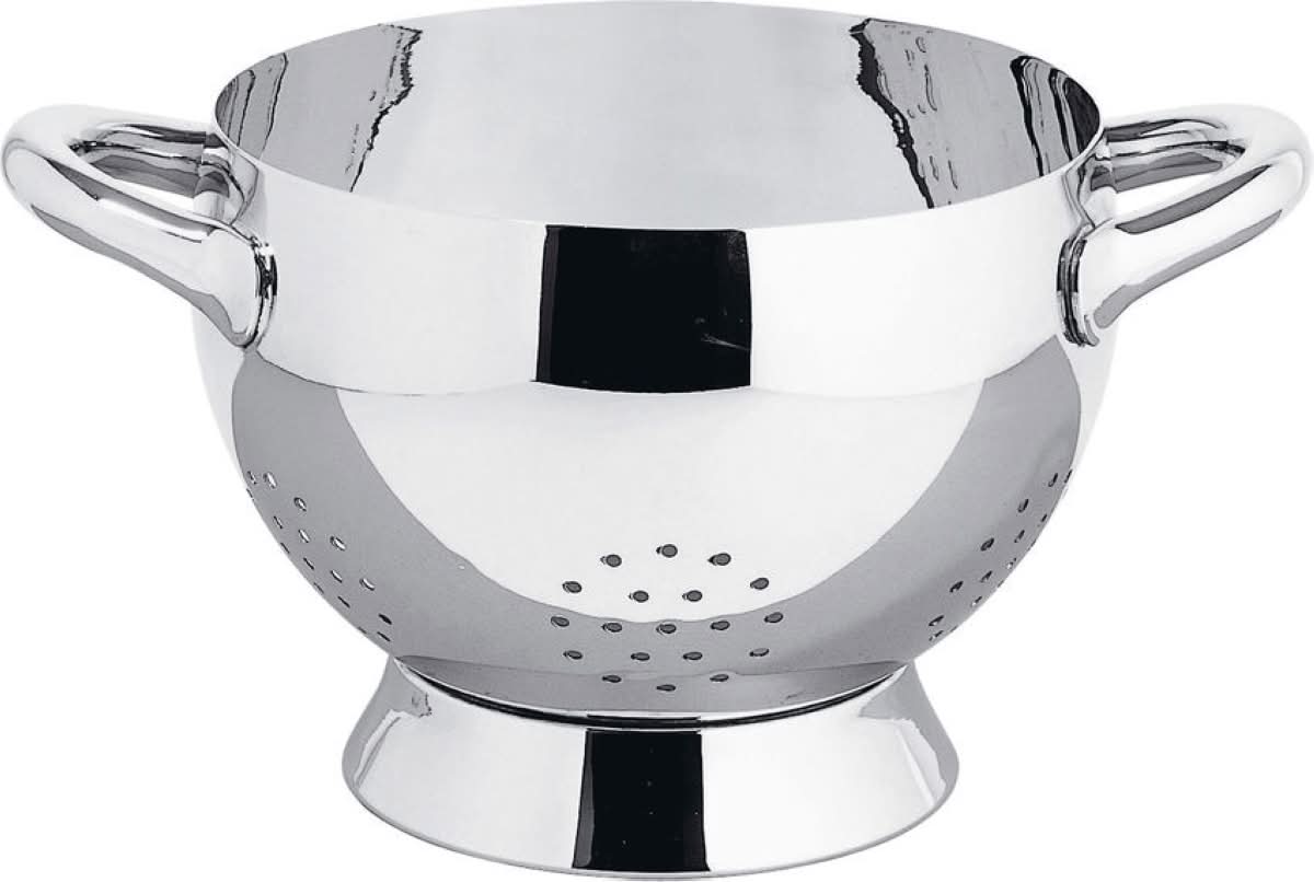Alessi SG300 Mami Scolatoio è l'accessorio di design in acciaio inossidabile 18/10 lucido. Lo scolapasta a due manici è il complemento perfetto della collezione Mami, creata dal designer Stefano Giovannoni, che grazie alle forme morbide e abbondanti richiama il design degli utensili da cucina utilizzati un tempo. La serie “Mami” comprende anche teglie e padelle in alluminio presso-fuso antiaderente, un pasta-set e una pentola a pressione, oltre a un servizio di posate e a superbi coltelli da cucina.