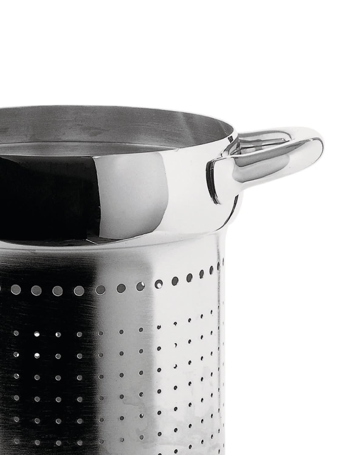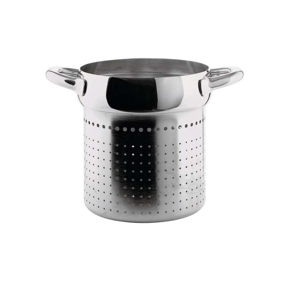 Alessi SG306 Mami Cestello traforato per Pasta-set è l'accessorio di design in acciaio inossidabile 18/10 lucido. La serie “Mami” comprende anche teglie e padelle in alluminio presso-fuso antiaderente, un pasta-set e una pentola a pressione, oltre a un servizio di posate e a superbi coltelli da cucina.